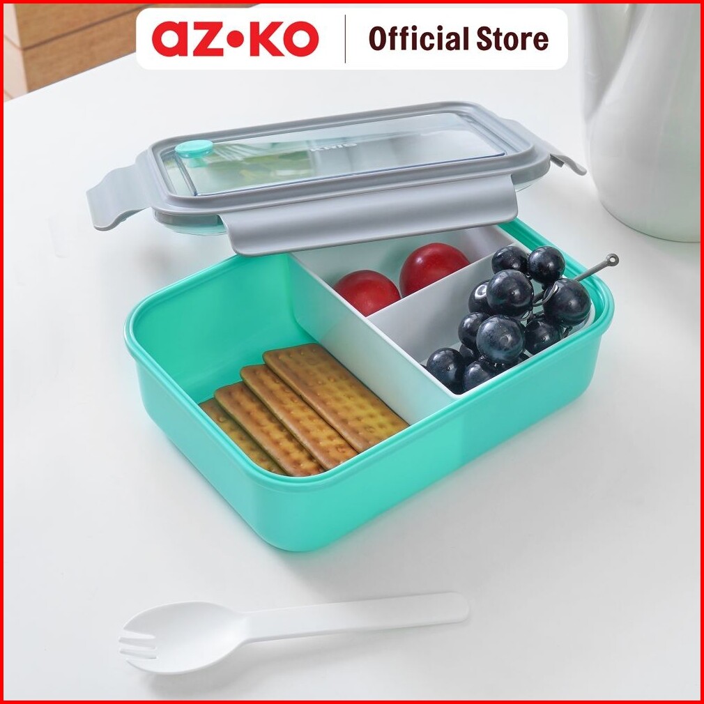 Azko Kris 1.25 Ltr Kotak Makan 3 Sekat Plastik - Hijau Lunch Box Food Grade Food Box Kotak Bekal Makan Wadah Makanan