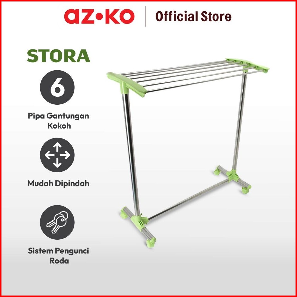 Azko Stora Jemuran Handuk Indoor 6 Pipa - Hijau Tempat Jemur Anduk Drying Rack Gantungan Lap Mandi Towel Rack Plastik Ab