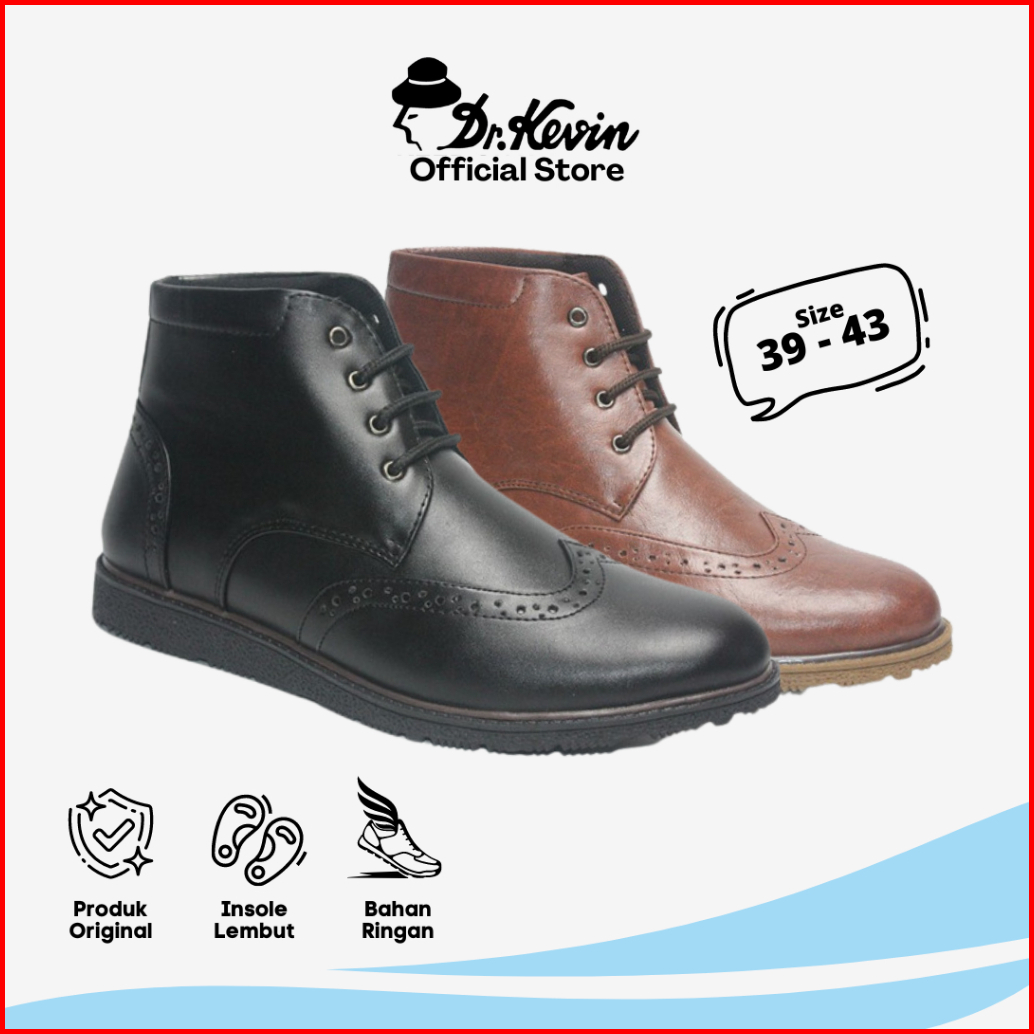 Dr. Kevin Sepatu Boot Formal Kasual Men Boots 831-024 Hitam Dan Coklat 39 Only