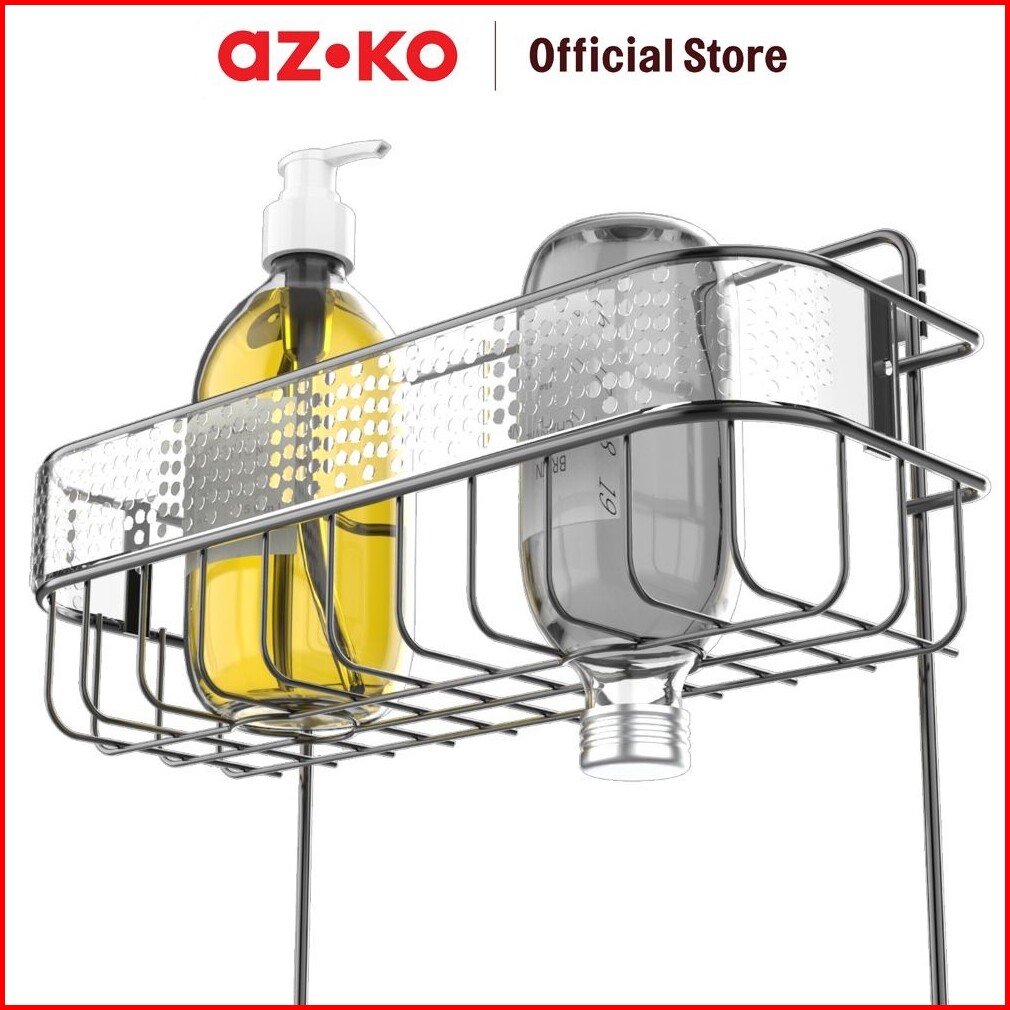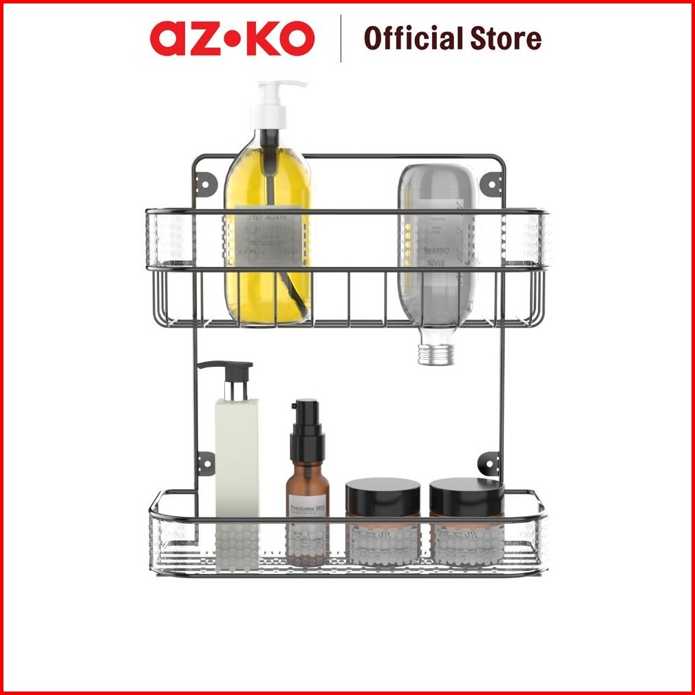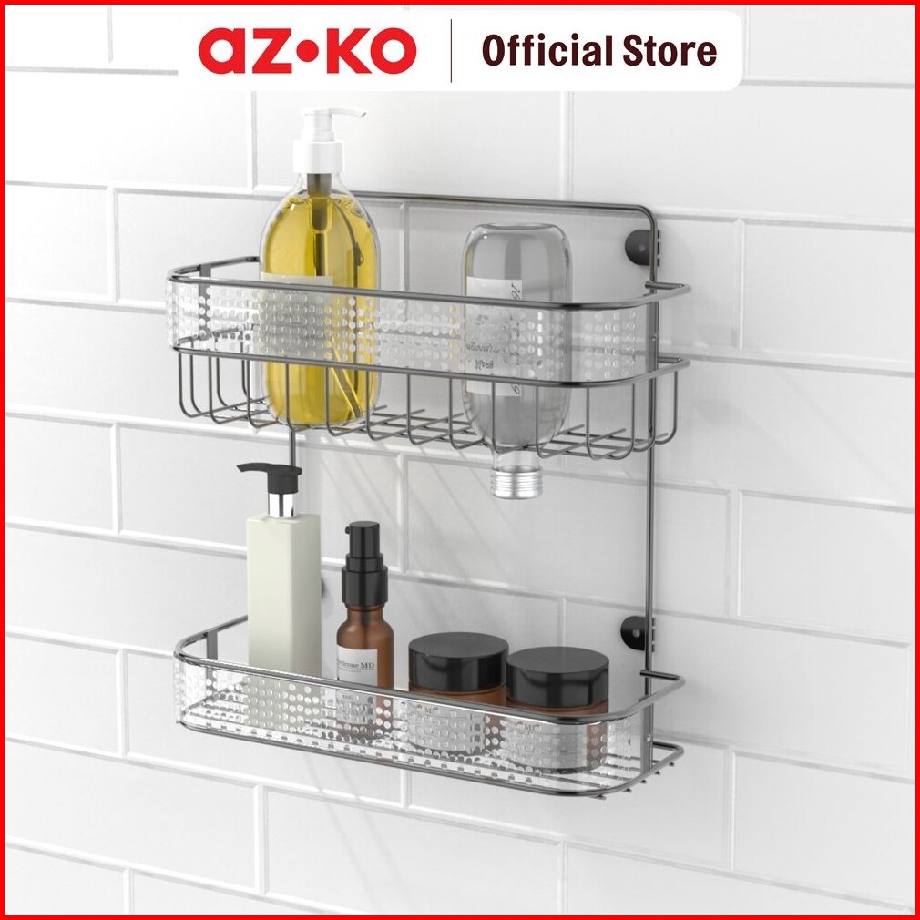 Azko Stora Rak Dinding Kamar Mandi 2 Tingkat Pet - Silver Shower Wall Shelf Organizer Tempat Sampo Sabun Rak Tembok Serb