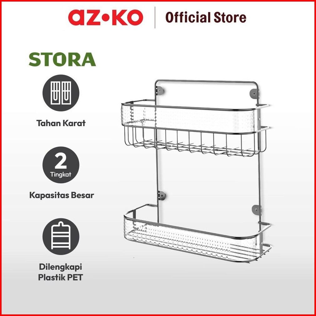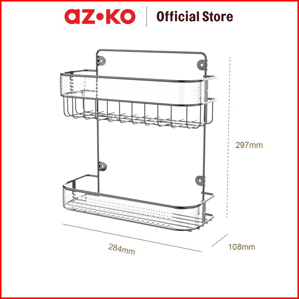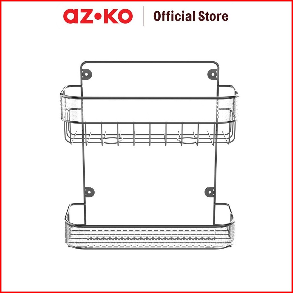 Azko Stora Rak Dinding Kamar Mandi 2 Tingkat Pet - Silver Shower Wall Shelf Organizer Tempat Sampo Sabun Rak Tembok Serb
