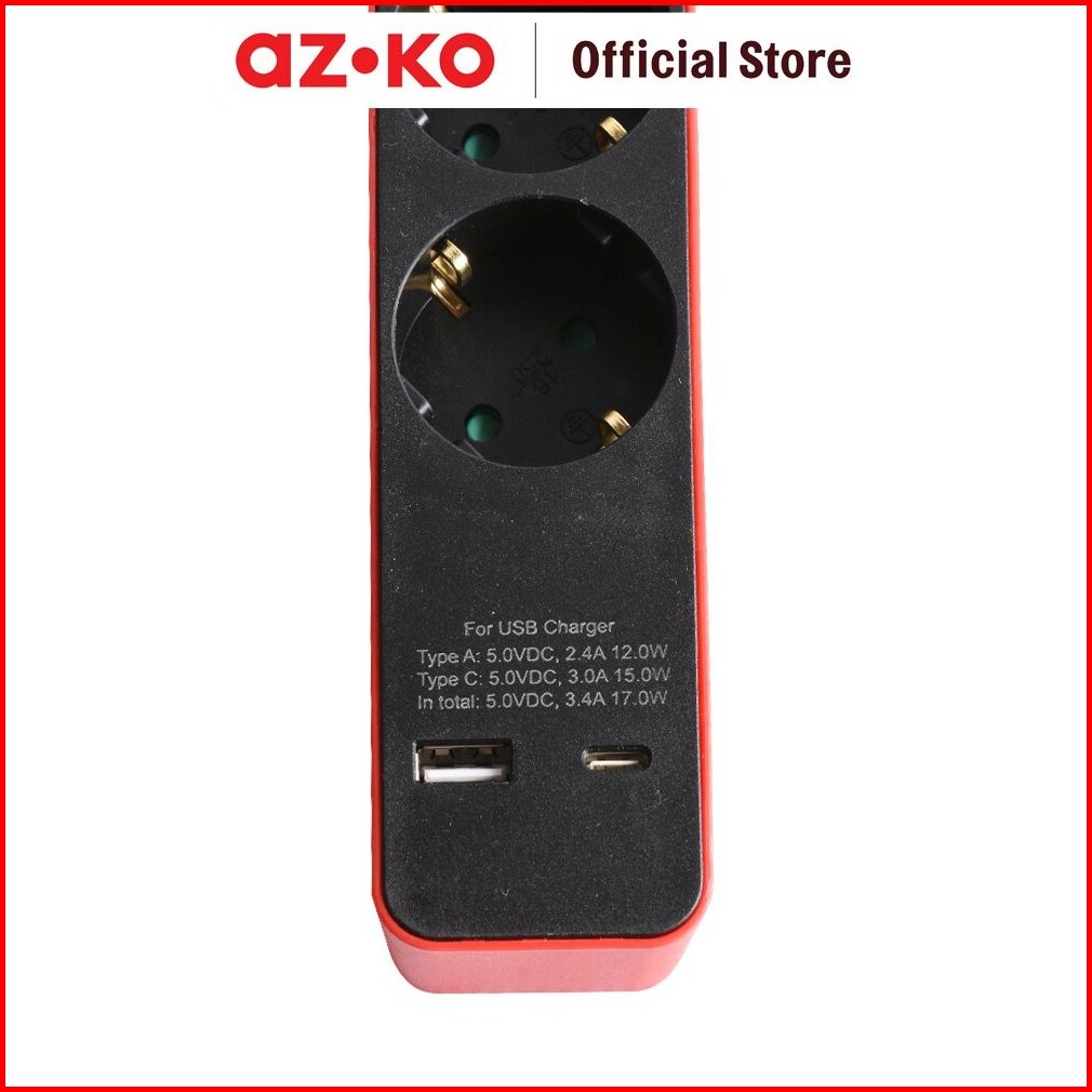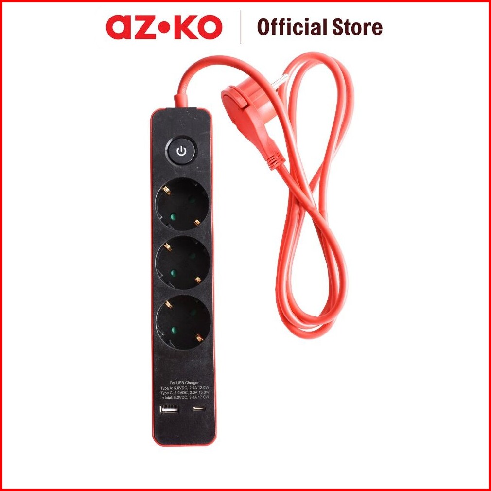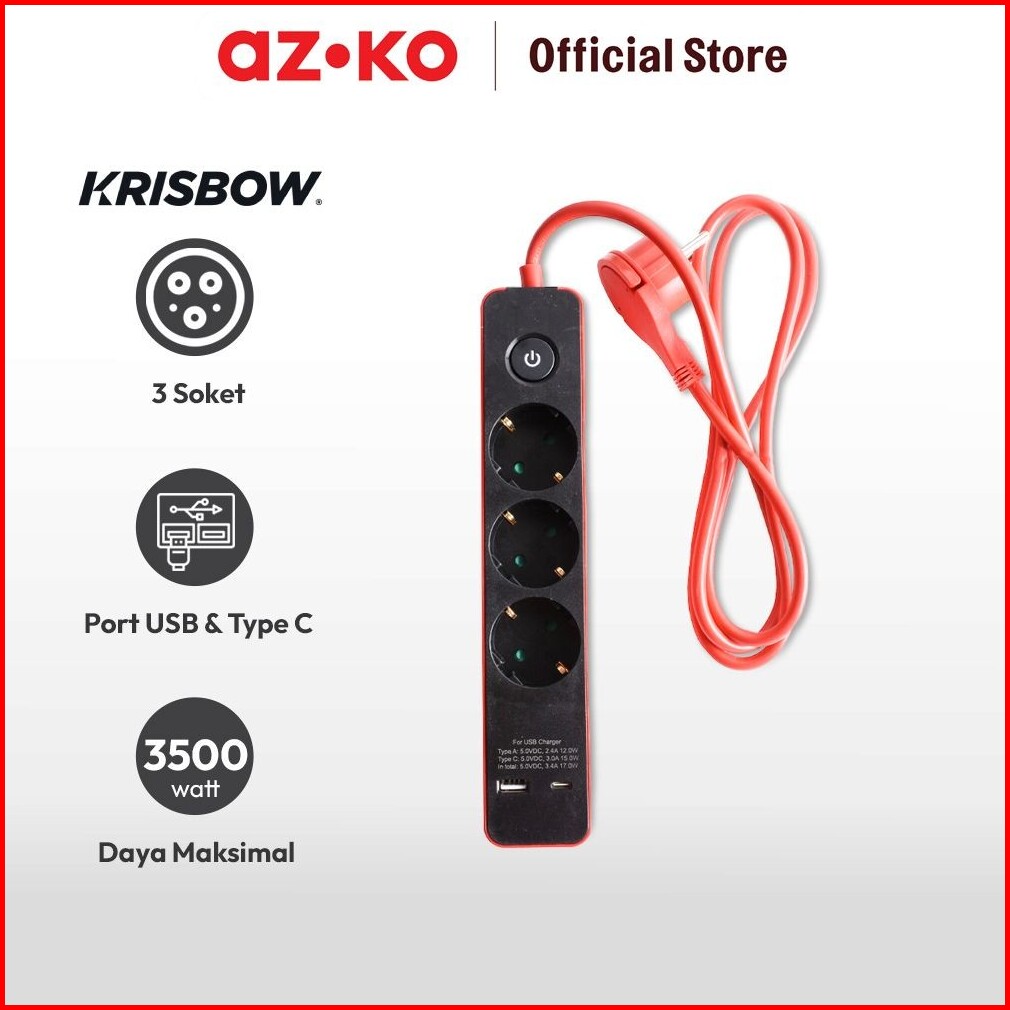 Azko Krisbow Stop Kontak 3 Socket Dengan Port Usb Type C - Merah Electric Socket Terminal Colokan Listrik Kotak Kontak P