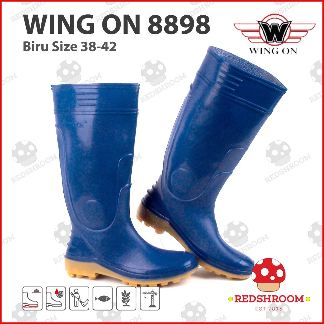 Sepatu Boot Tinggi Wing On 8898 Biru Boots Karet Lokal Lentur Ringan Nyaman Perikanan Perairan