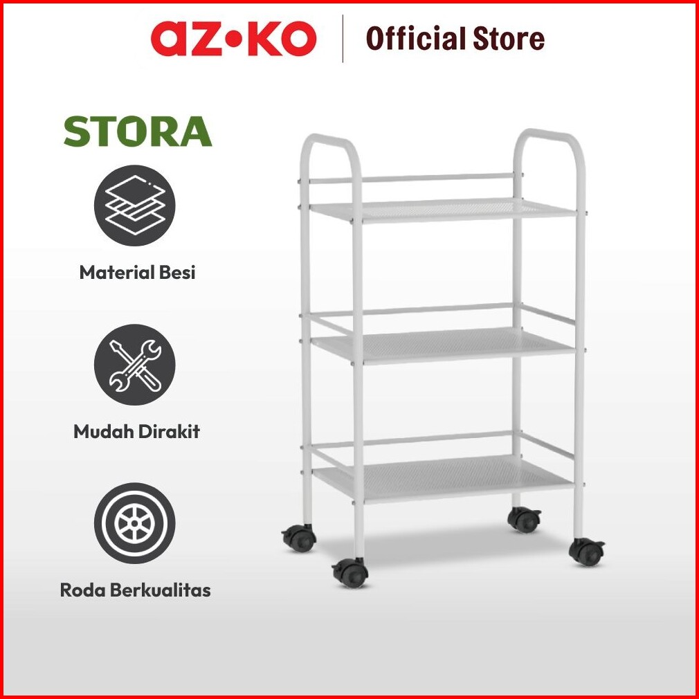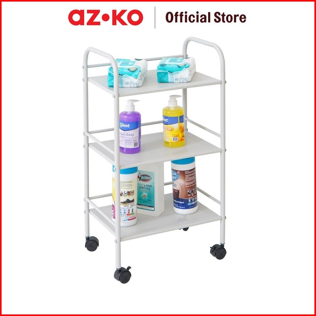 Azko Stora Lyra Rak Troli 3 Tingkat - Putih Organizer Trolley Rak Penyimpanan Rak 3 Susun Roda