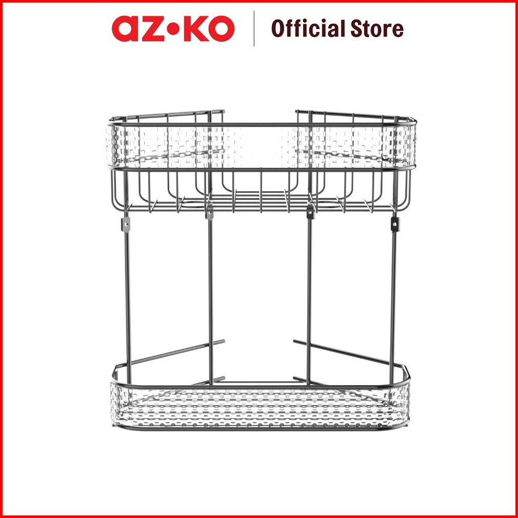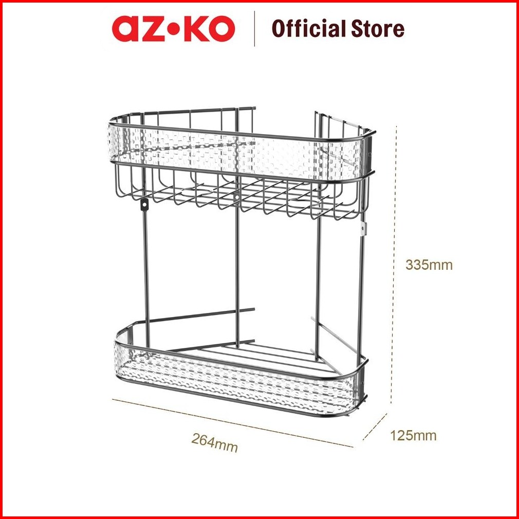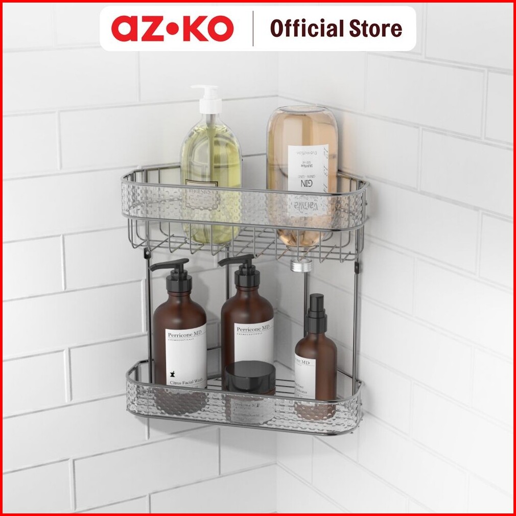 Azko Stora Rak Sudut Kamar Mandi 2 Tingkat - Silver Shower Wall Shelf Corner Rak Tembok Serbaguna Aksesoris Kamar Mandi