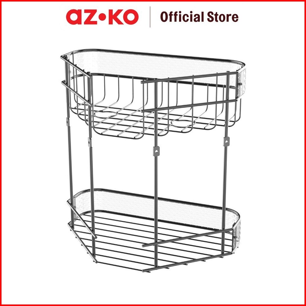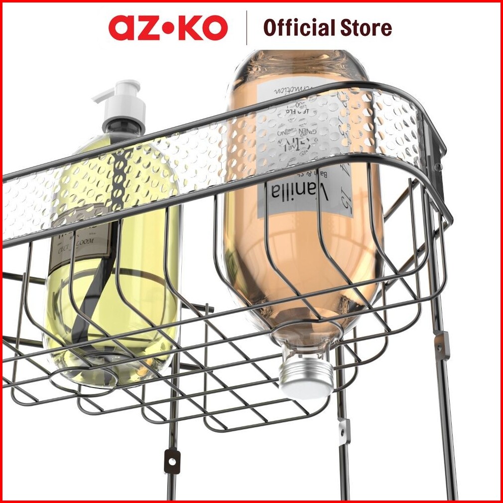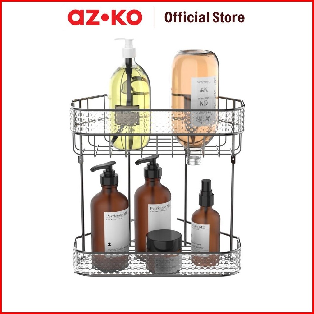 Azko Stora Rak Sudut Kamar Mandi 2 Tingkat - Silver Shower Wall Shelf Corner Rak Tembok Serbaguna Aksesoris Kamar Mandi