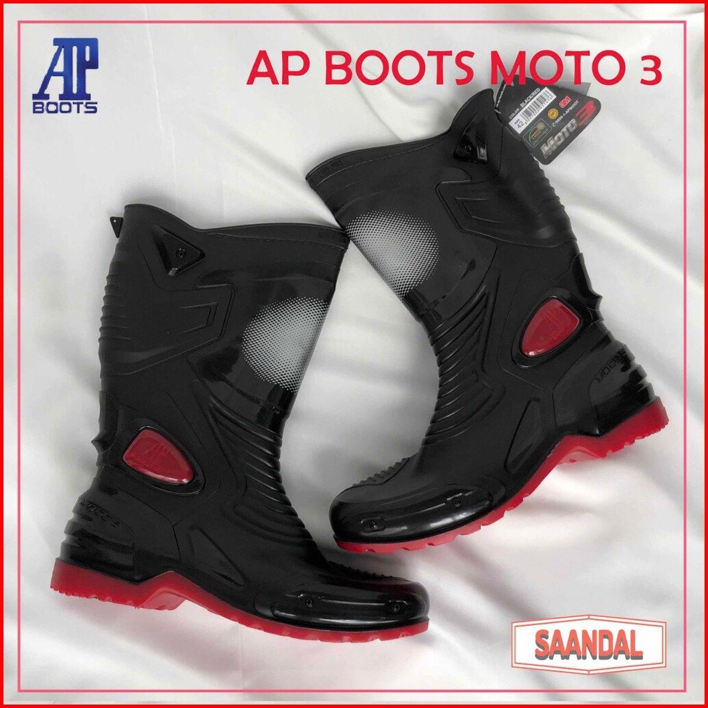 Sepatu Safety Boots Sepeda Motor Biker Ap Moto 3 Hitam Merah Pvc Anti-air Anti-licin