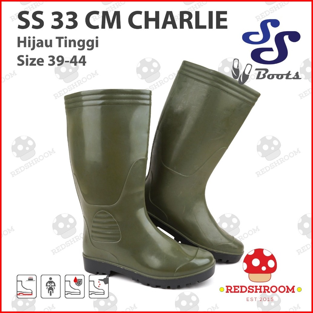 Sepatu Boot Tinggi Ss Boots Charlie Hijau Boots Karet Lokal Anti Air Slip Nyaman Ringan Kuat Perkebunan