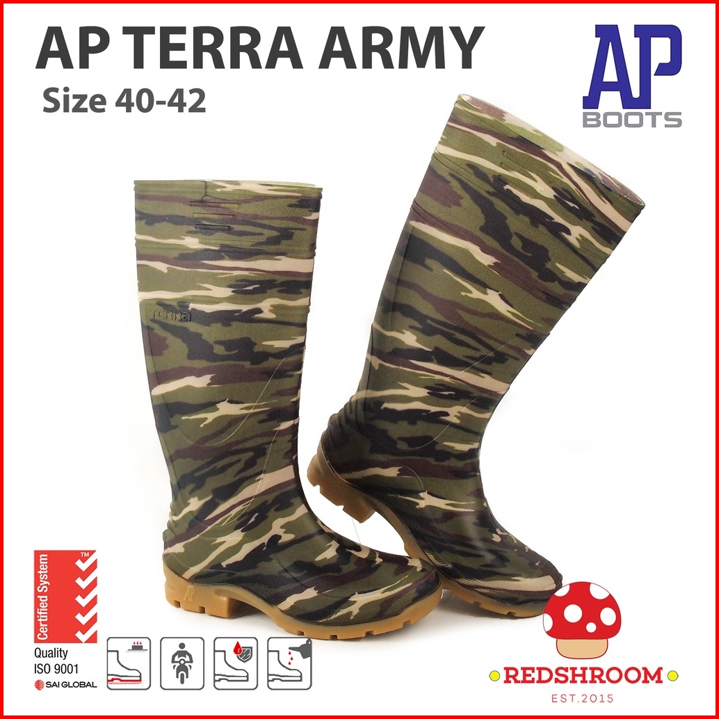 Sepatu Boot Tinggi Ap Terra Army Ap Boots Karet Lokal Nyaman Ringan Anti Slip Air Berburu Perhutanan