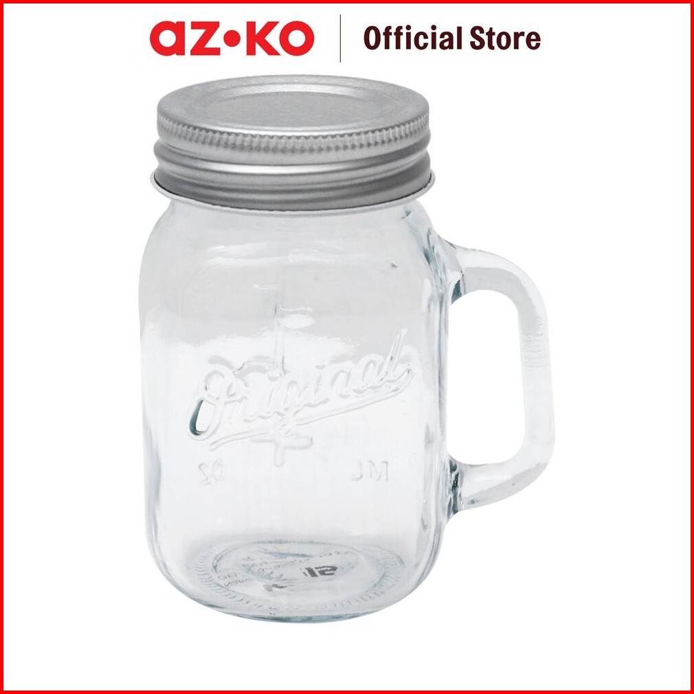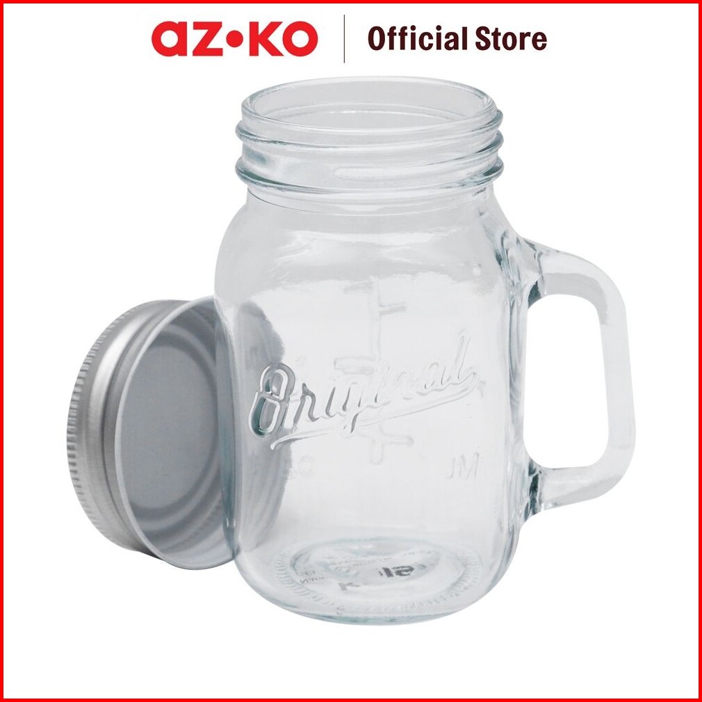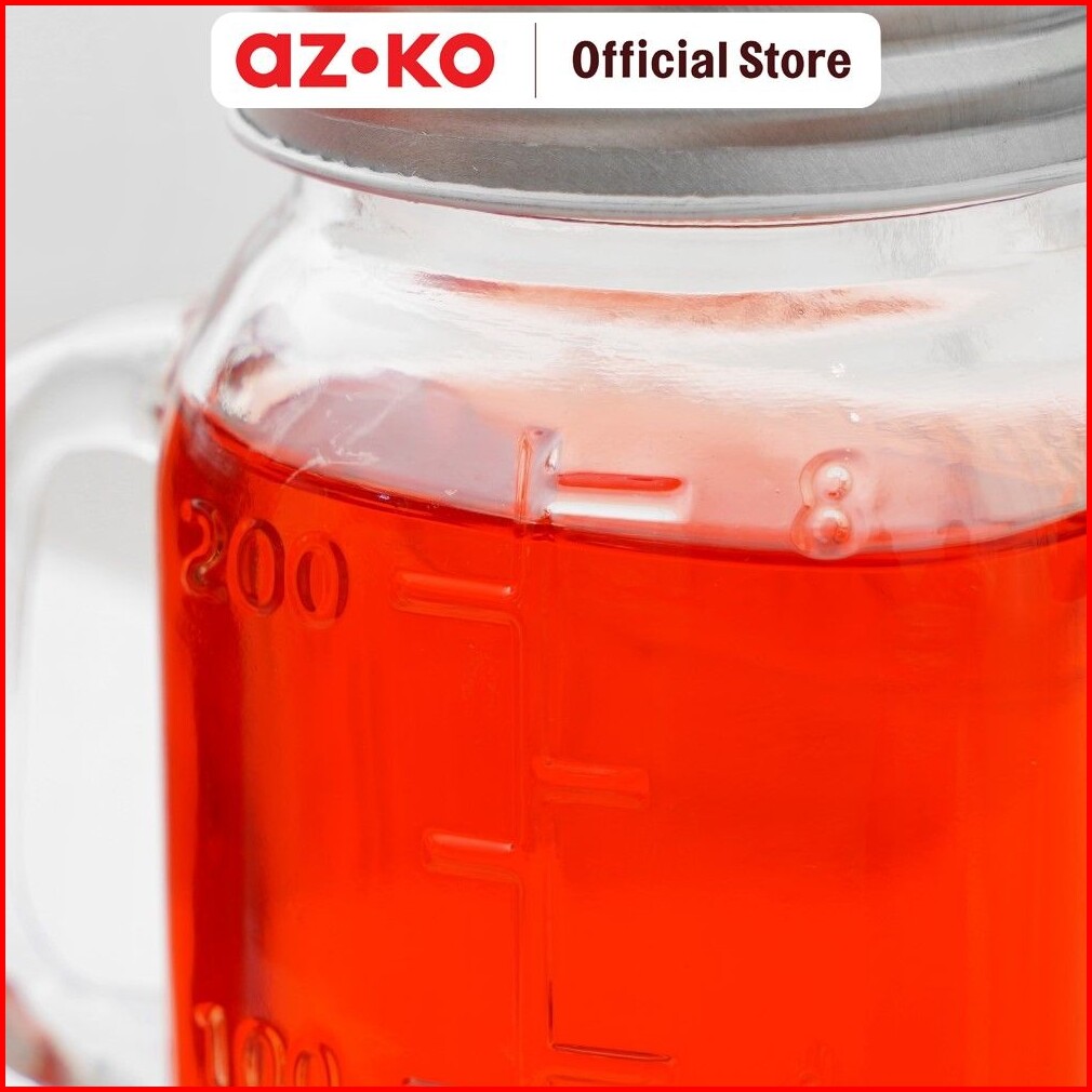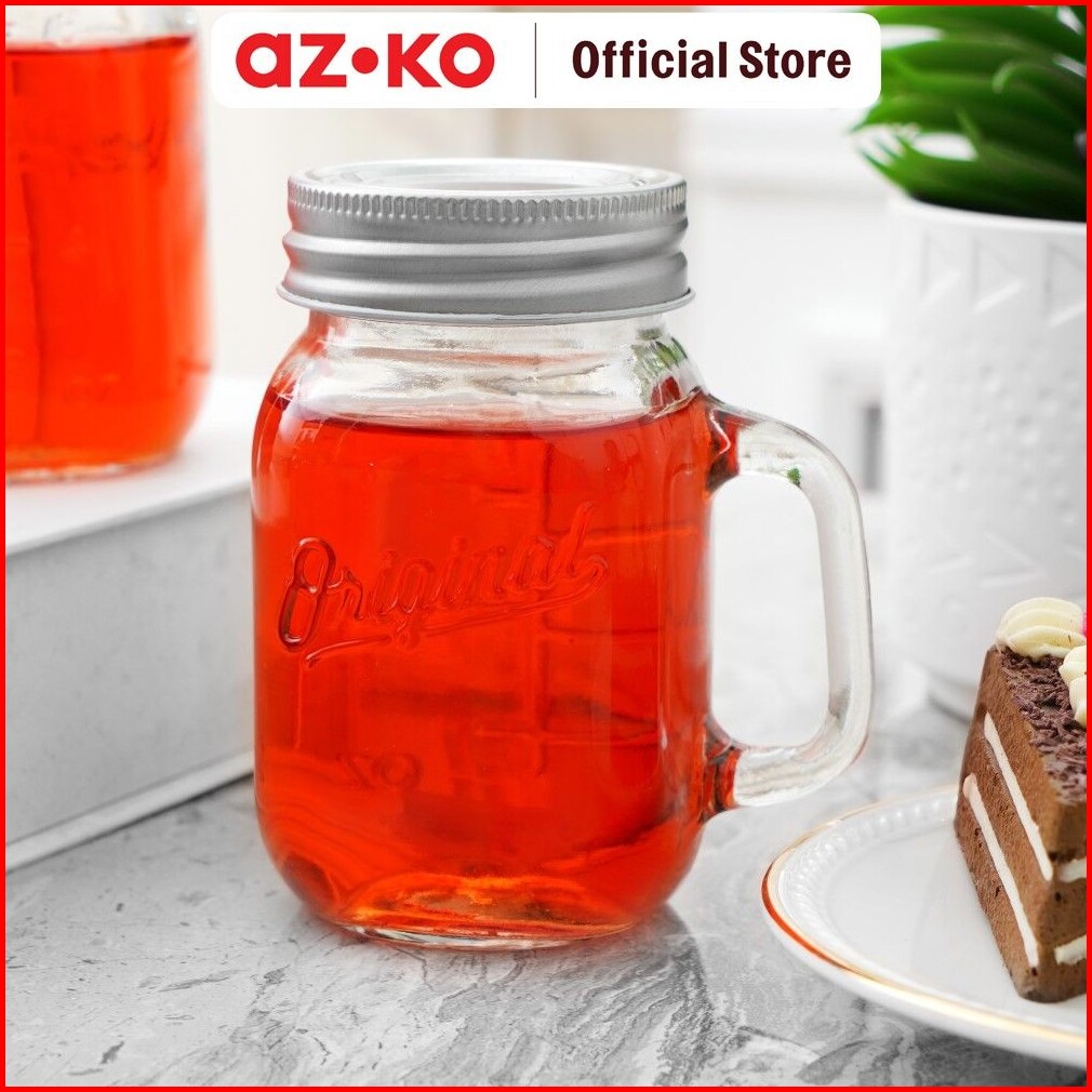 Azko Delicia 300 Ml Set 4 Pcs Mason Mug Jar Dengan Tutup Gelas Beling Dengan Handle Cup Wadah Minuman Perlengkapan Dapur