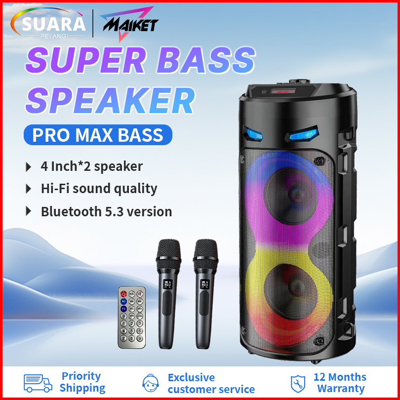 Pro Max Bassmaiket Speaker Bluetooth Karaoke Besar Super Bass With Mic Polytron Protable 8 Inch Wireless Salon Aktif 100