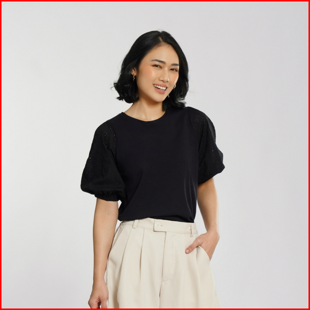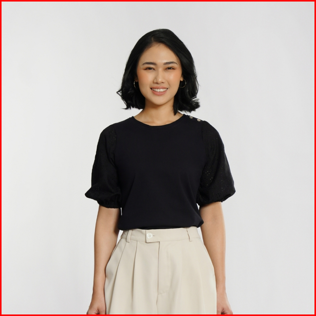 Momelca - Vega Daily Basic Black Top Atasan Baju Basic Wanita Uk. Ld 92-150cm