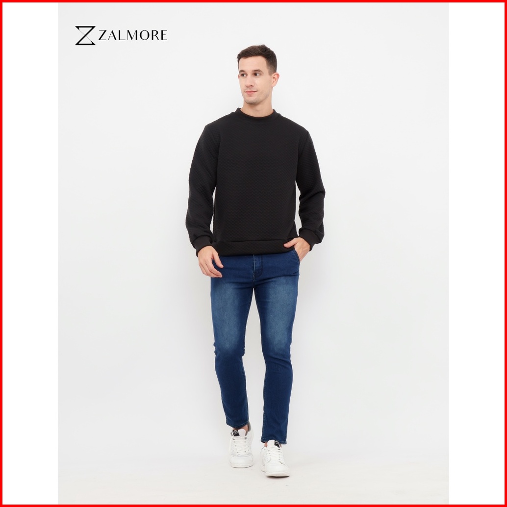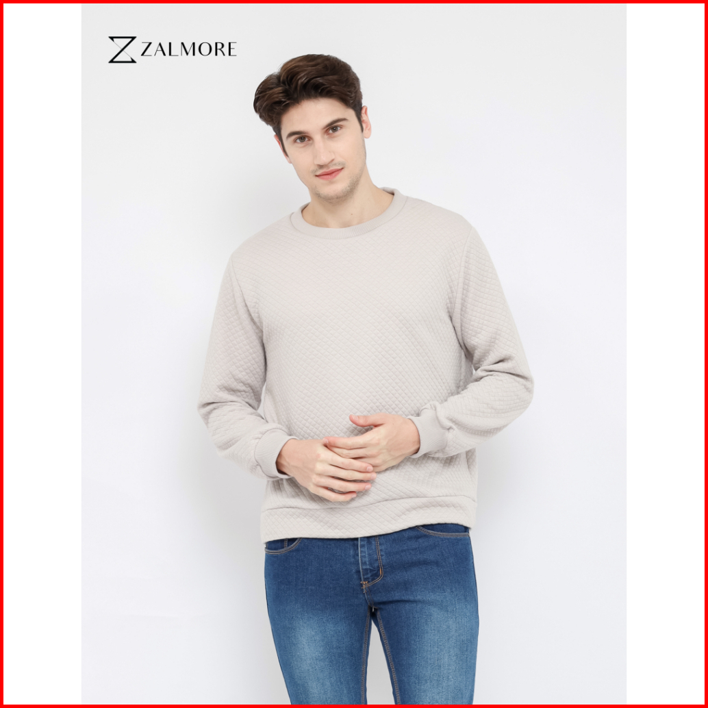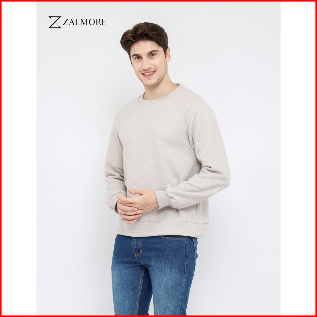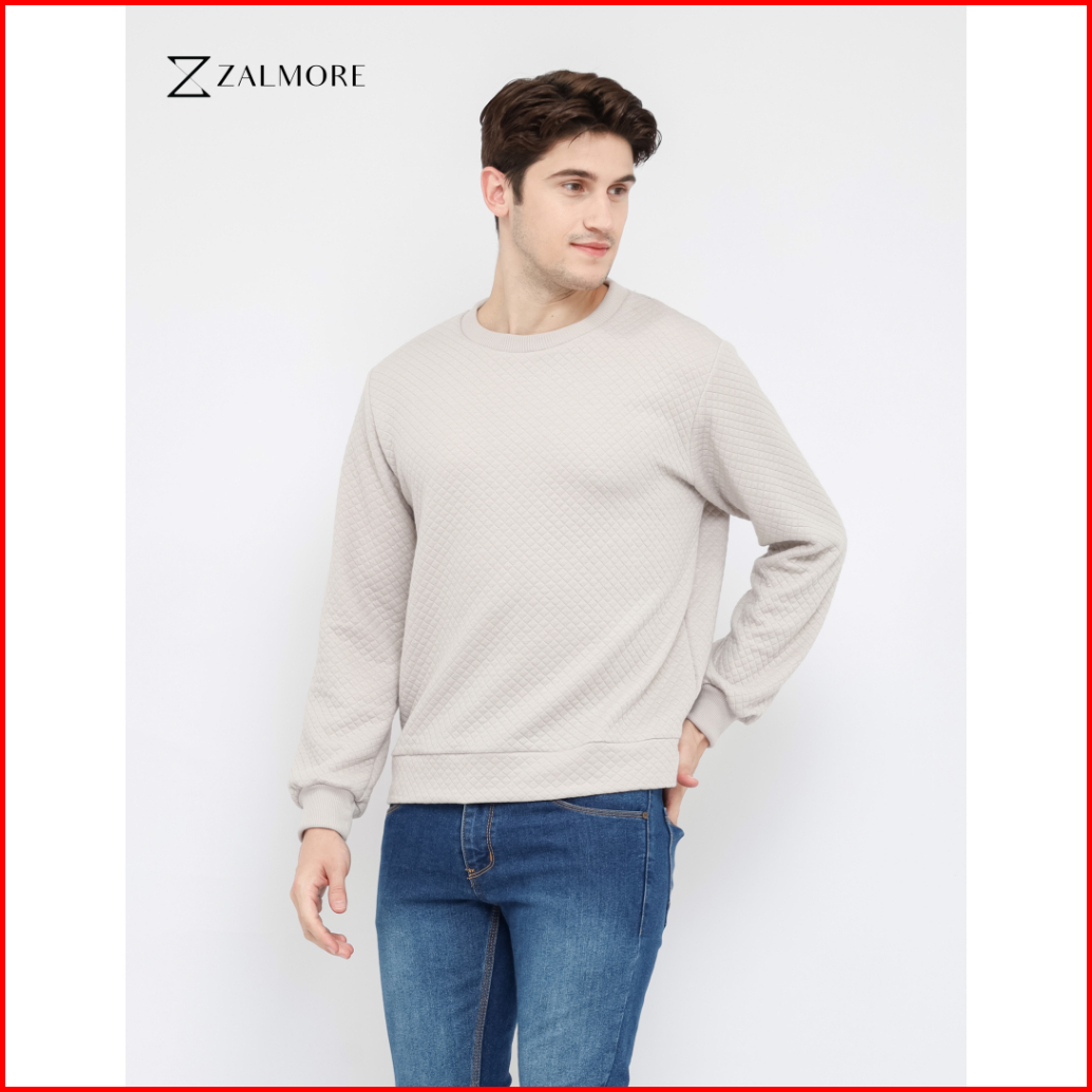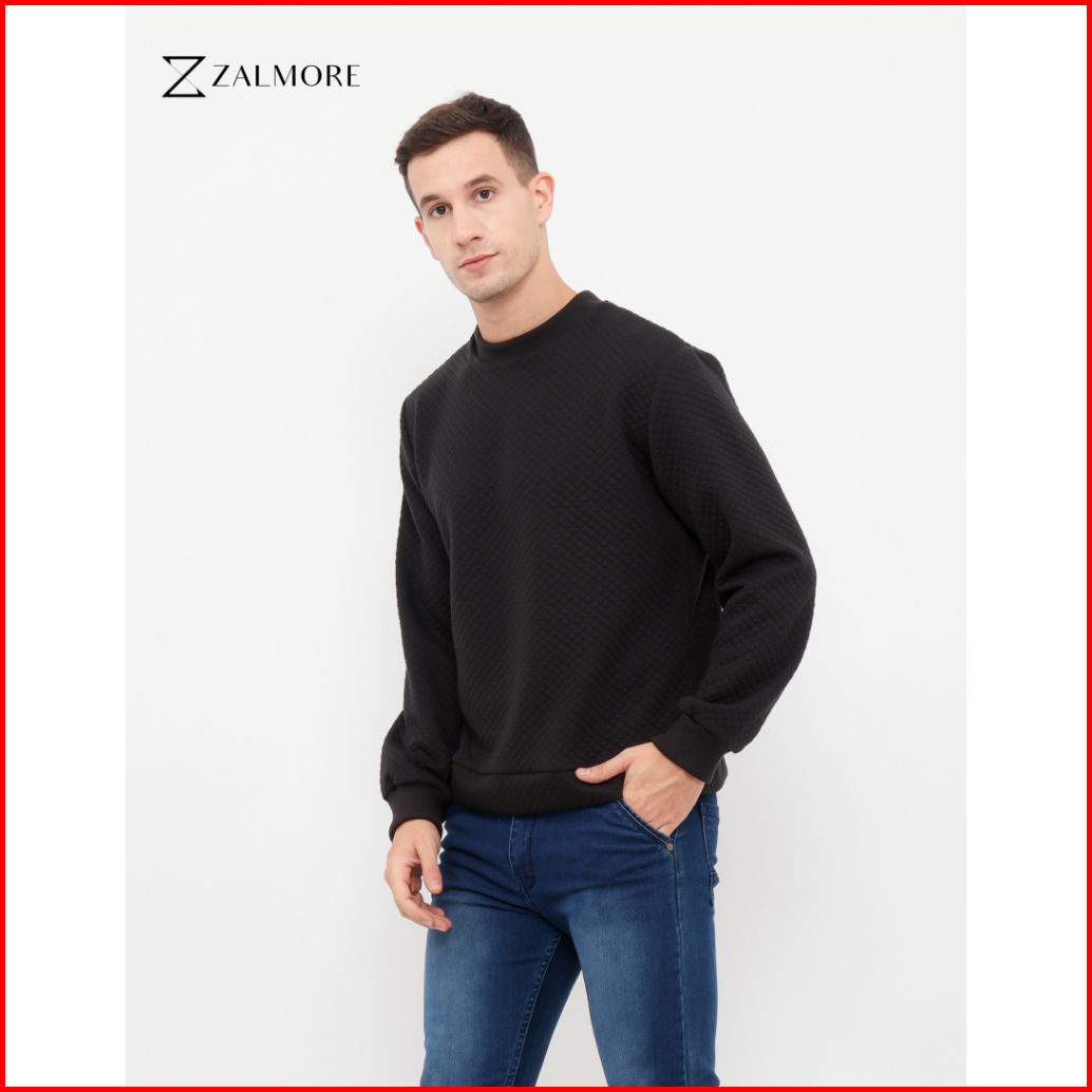 Zalmore Men Crewneck Sweatshirt Embossed Cotton - Sweater Pria