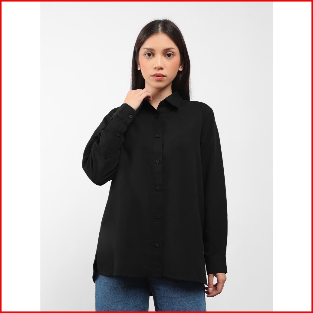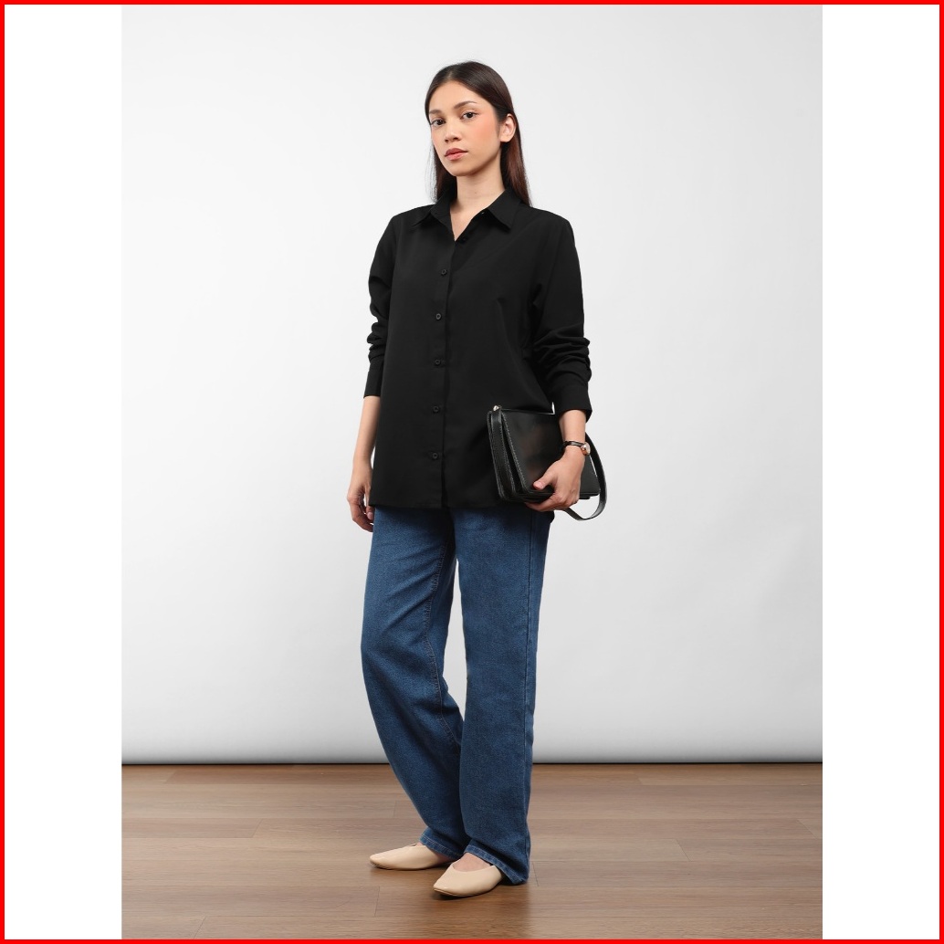 Thenblank Everyday Shirt Black Kemeja Wanita Kemeja Kerja Baju Wanita