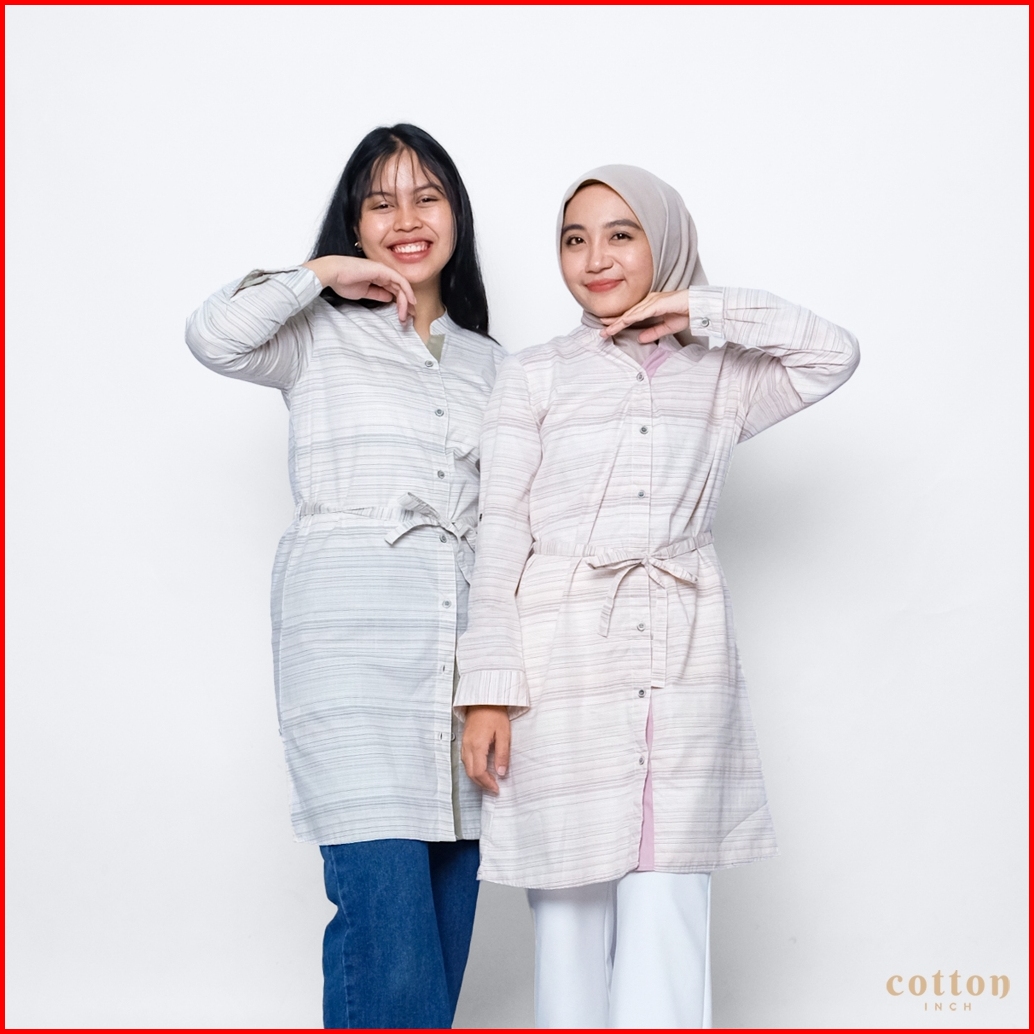 Cotton Inch - Shenna Tunik Dress Salur Tali Pinggang Wanita
