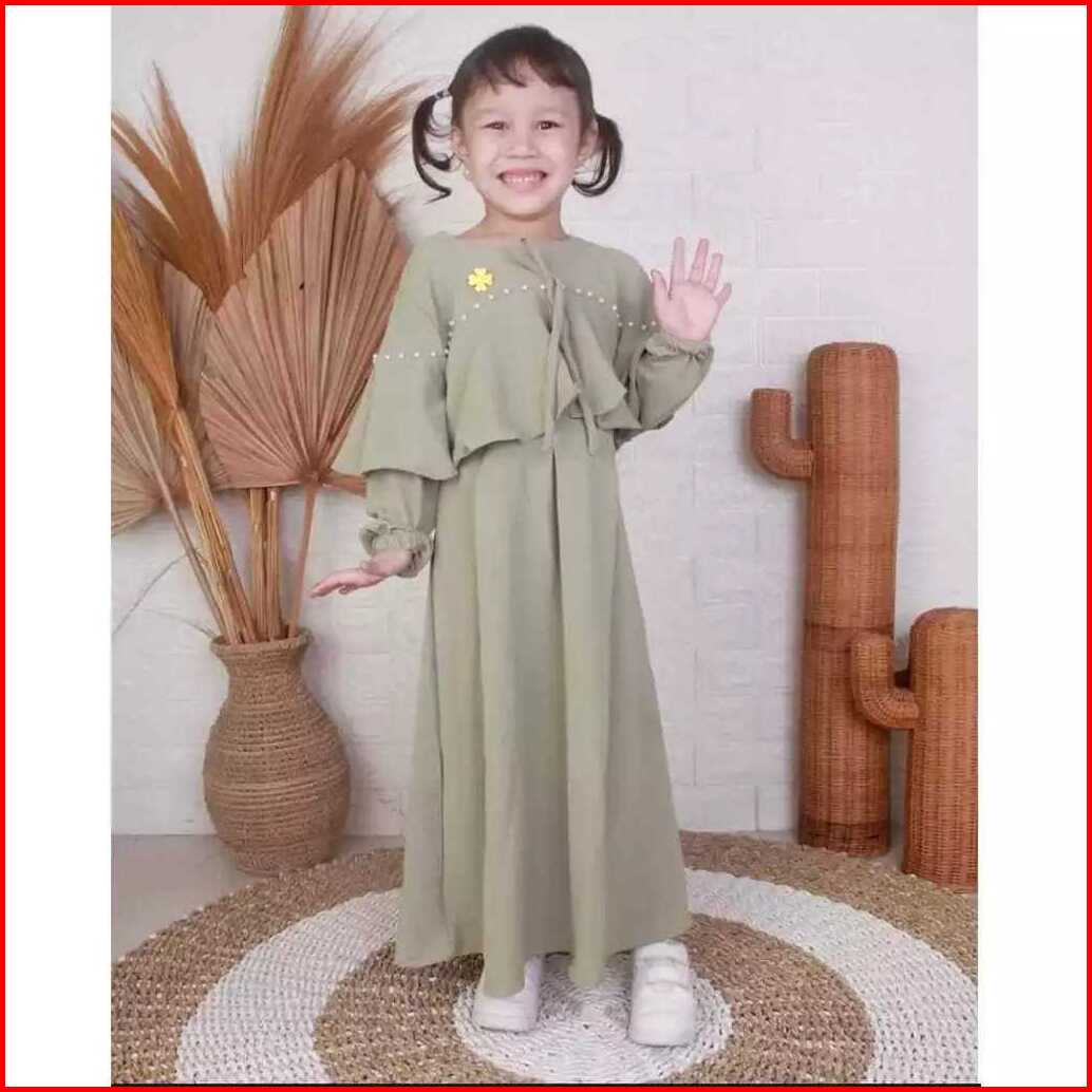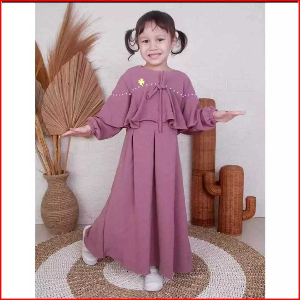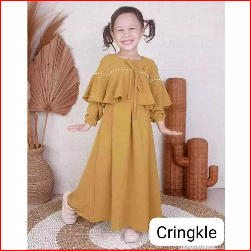Gamis Crinkle Anak Perempuan Mutiara Cantik Rempel Pita Premium Usia 1-8 Tahun