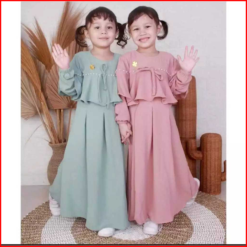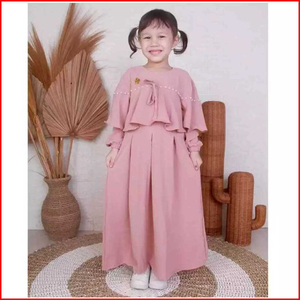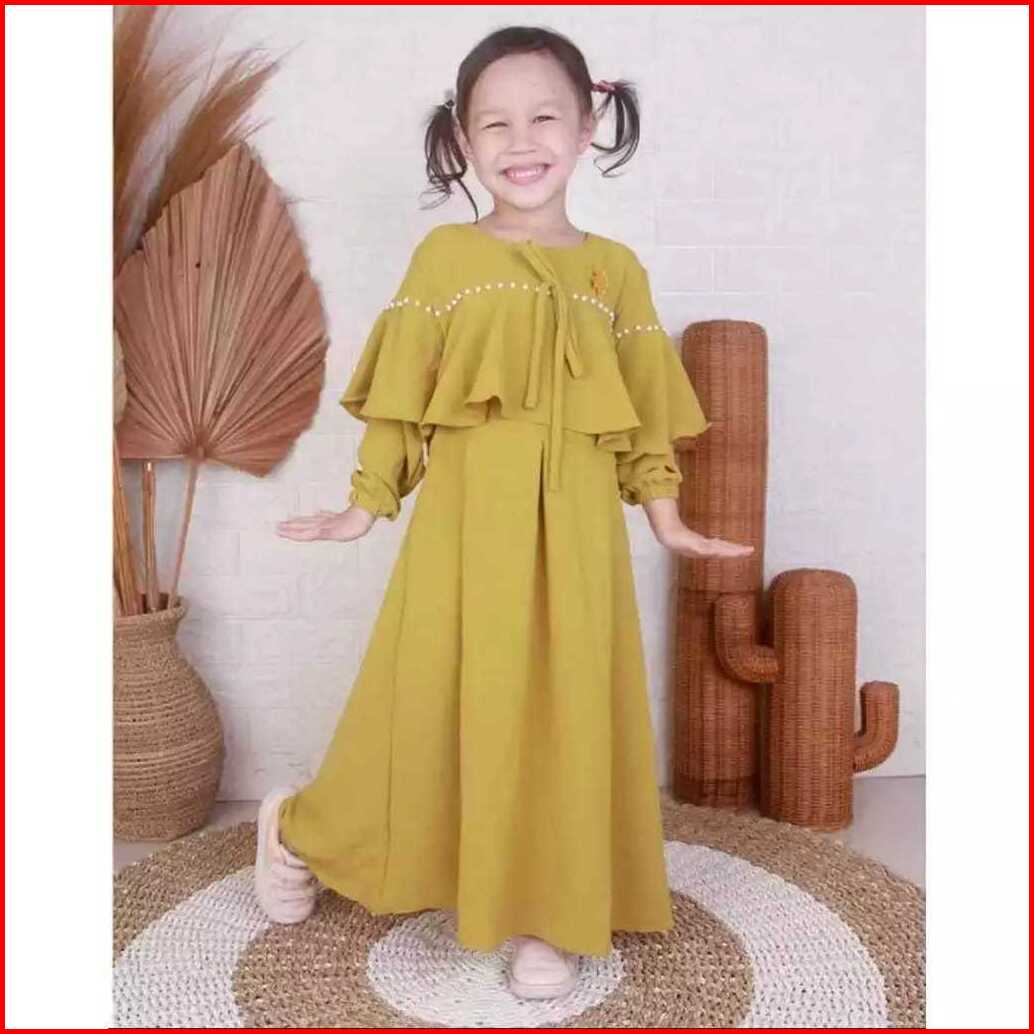 Gamis Crinkle Anak Perempuan Mutiara Cantik Rempel Pita Premium Usia 1-8 Tahun