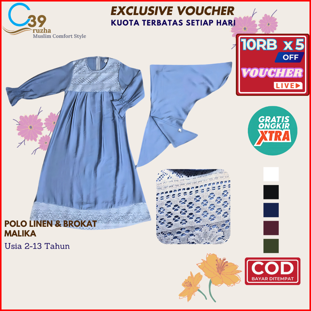 Set Gamis Hijab Anak Perempuan 2-13 Tahun Gamis Anak Perempuan Humaira