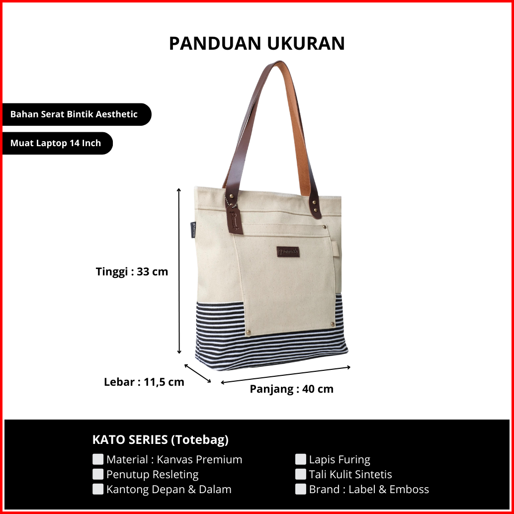 Pamole - Tas Tote Bag Wanita Penutup Resleting Totebag Kuliah Totebag Kerja - Kato Series