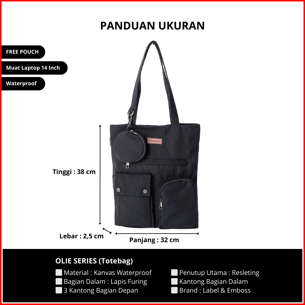 Pamole Tas Tote Bag Waterproof Bahan Kanvas Totebag Kerja Totebag Kuliah Totebag Unisex- Olie Series