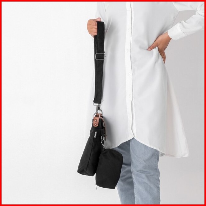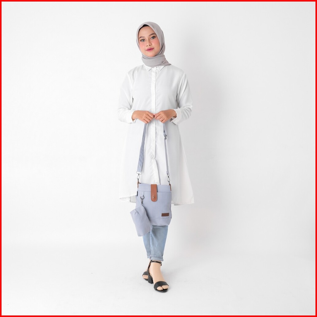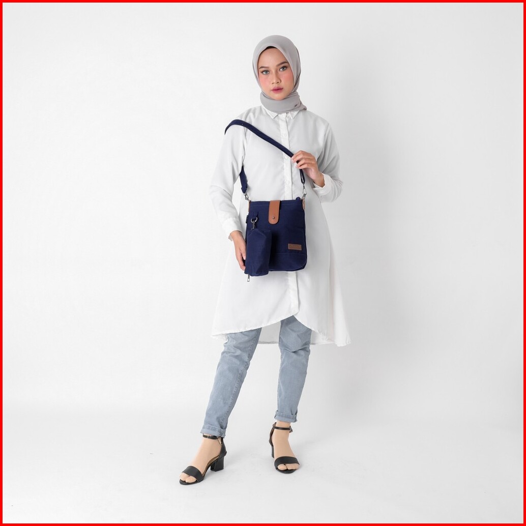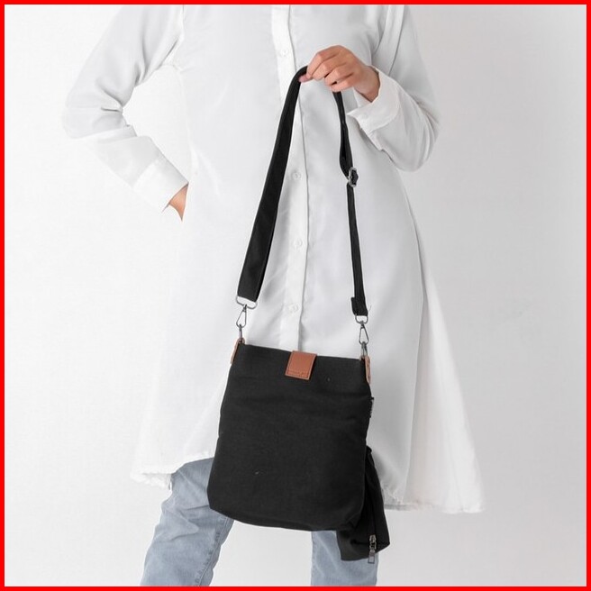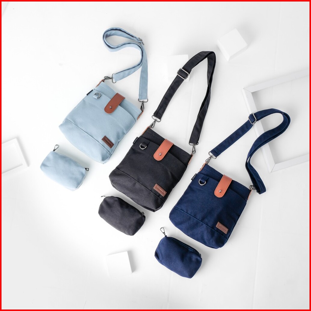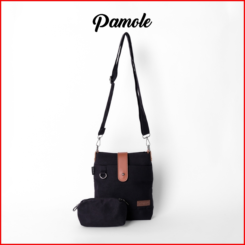 Pamole - Tas Selempang Sling Bag Wanita Bahan Kanvas Premium Penutup Resleting - Olive Series