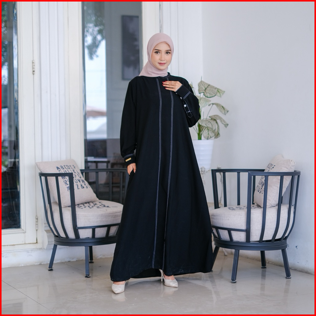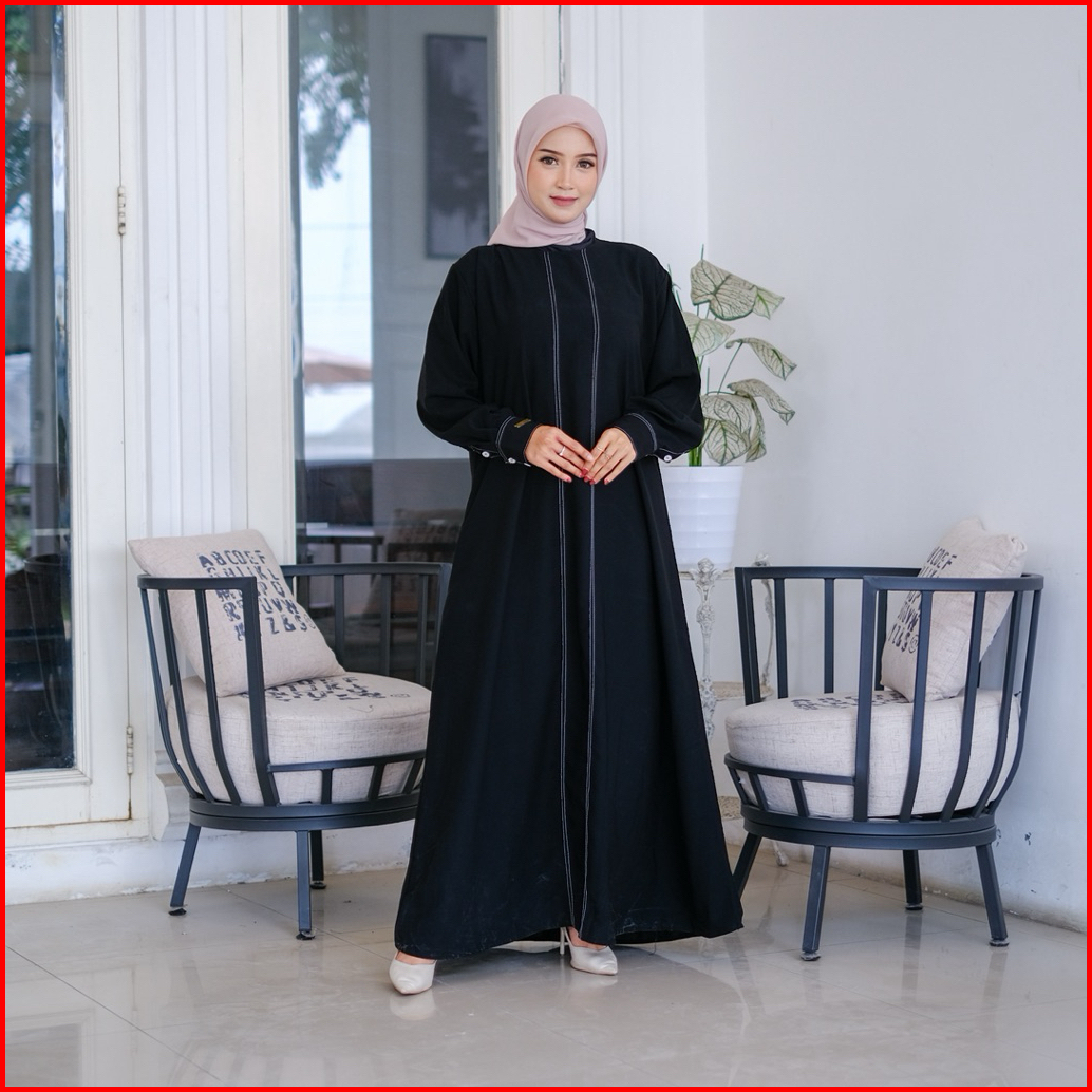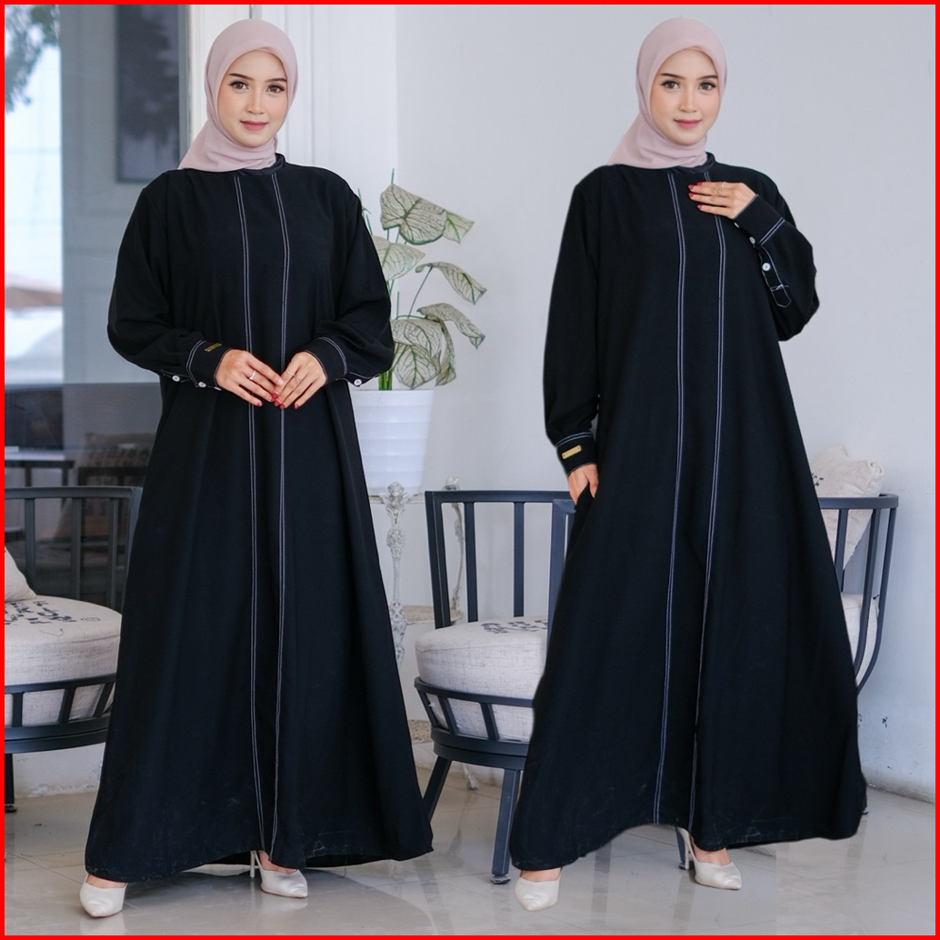 Abaya Hitam List Putih Gamis Polos Jetblack Saudi Hitam Pekat Dress Umroh Mewah Oleh Oleh Umroh