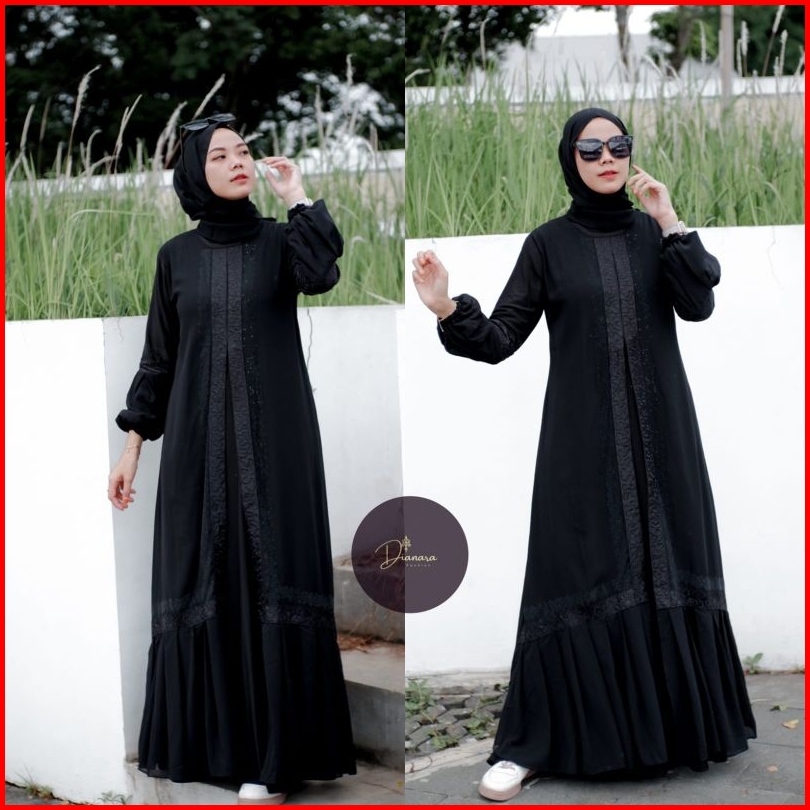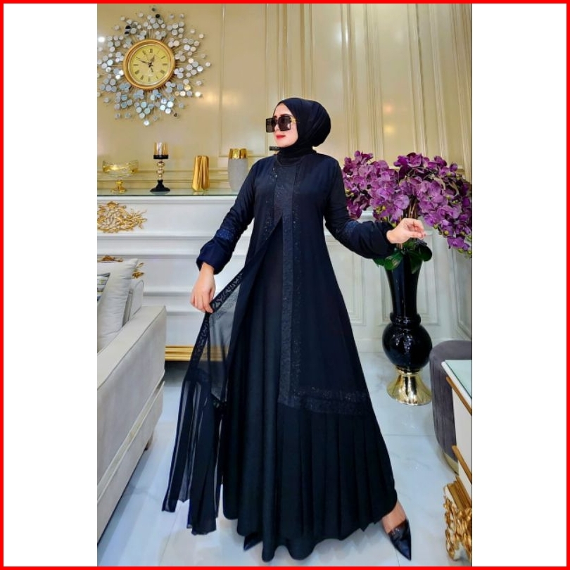 Abaya Hitam Zaskiya Full Bordir Hitam Tangan Balon