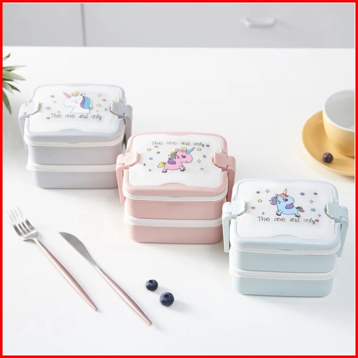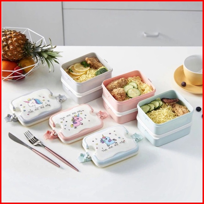 Tempat Makan Anak Sekolah Perempuan Bekal Lunch Box Cewek Unicorn Susu