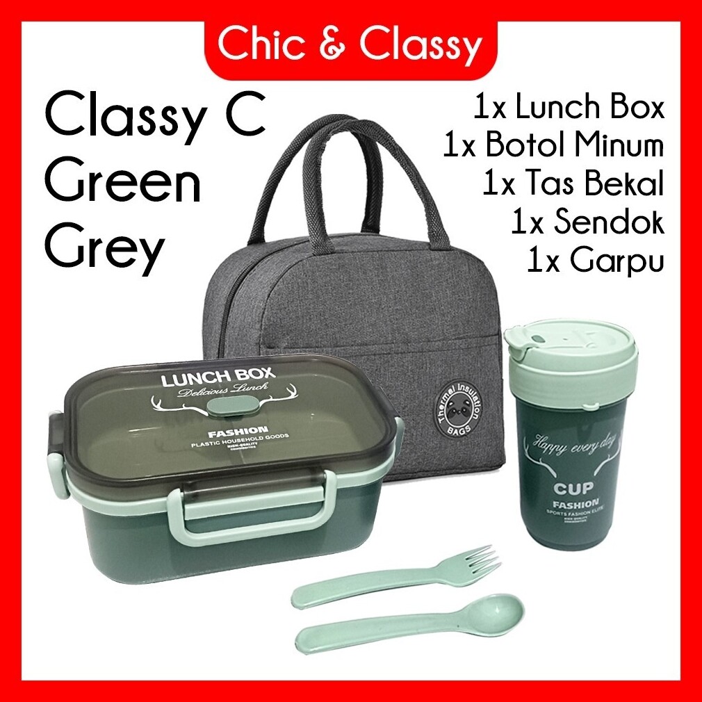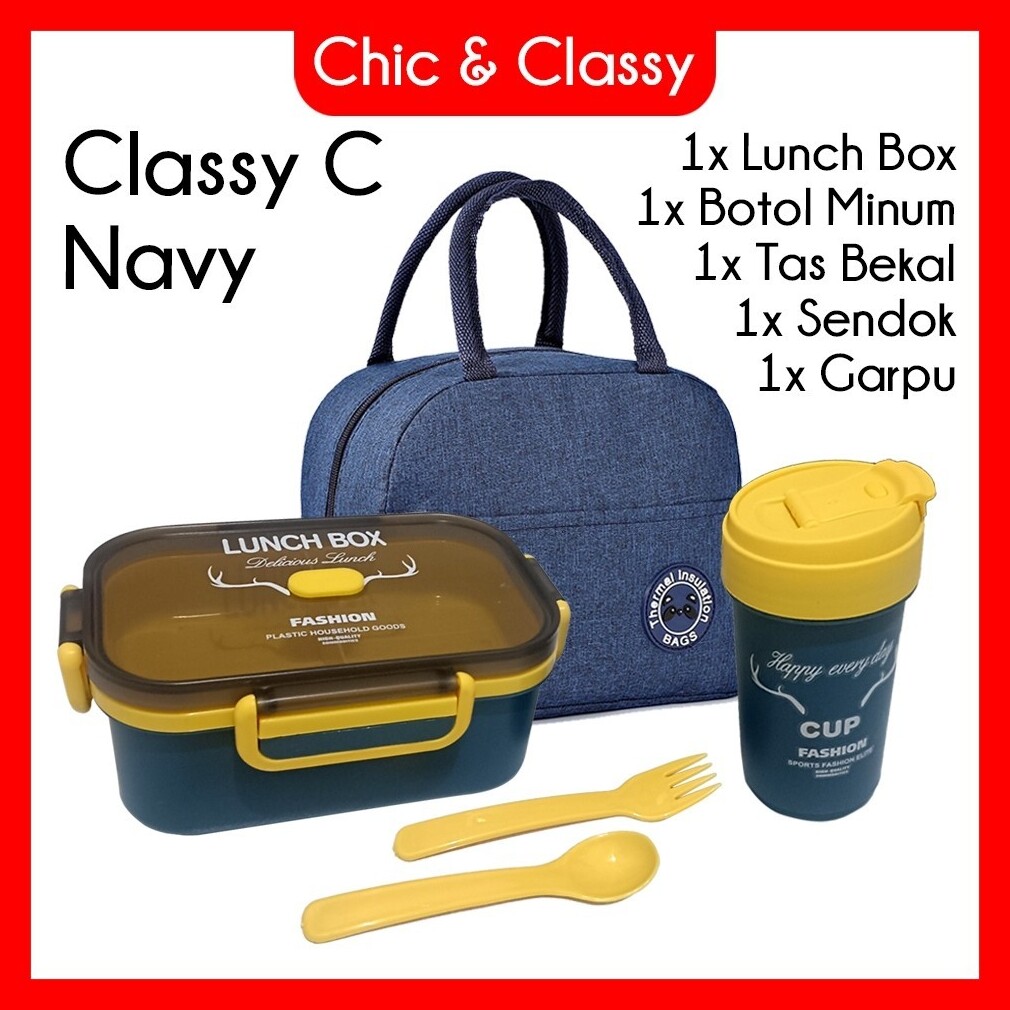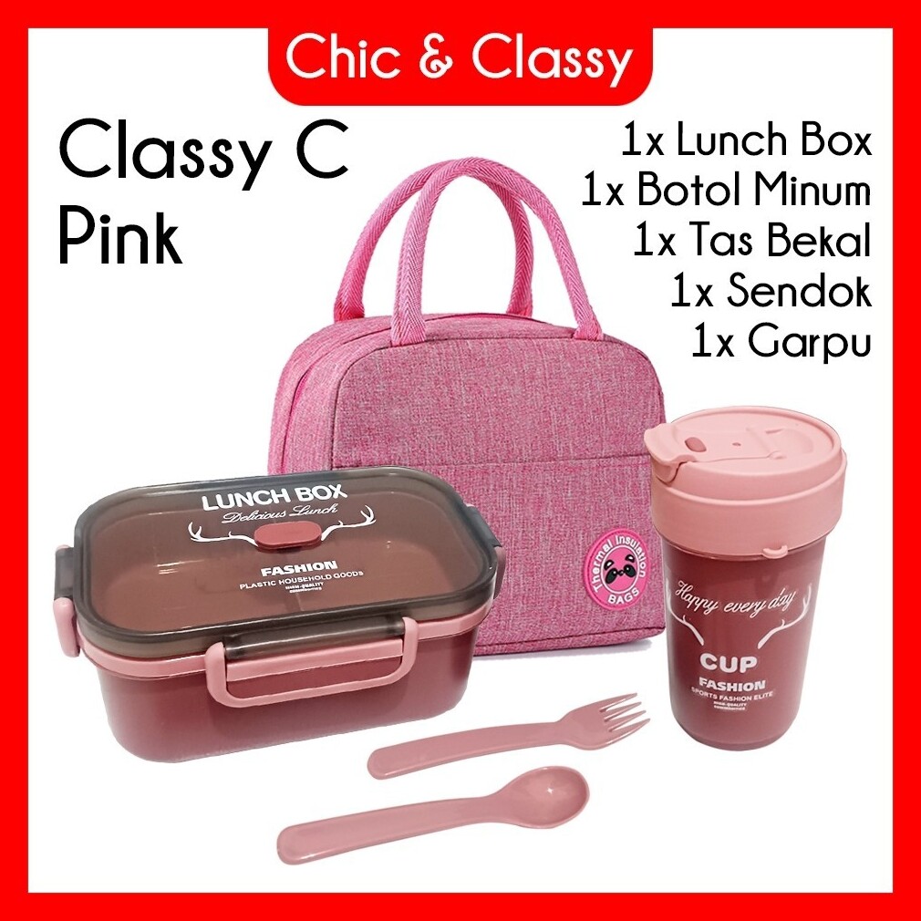 Classy C Lunch Box Set Kotak Makan Botol Minum Sendok Garpu Tas Bekal