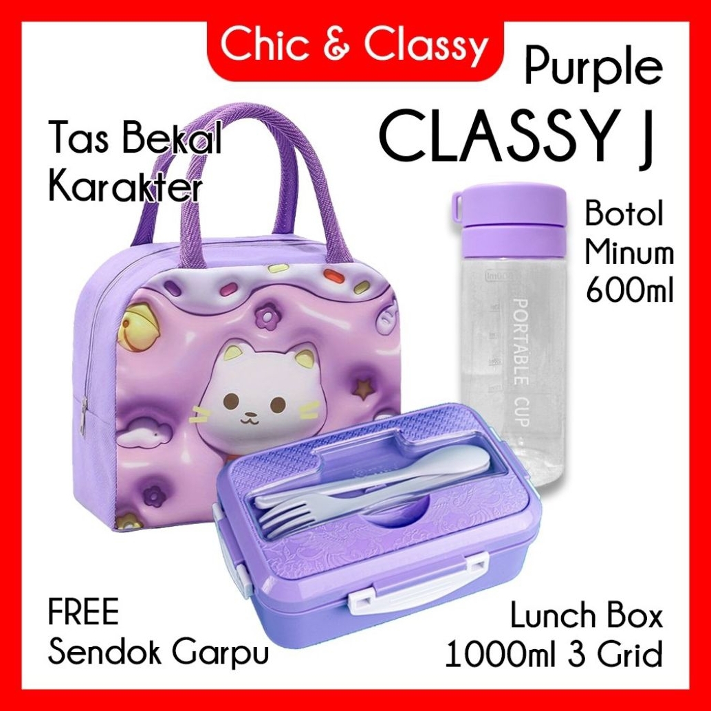 Classy J Kotak Makan Lunch Box Set Paket Sendok Garpu Botol Minum Tas Bekal Makan Anak Sekolah