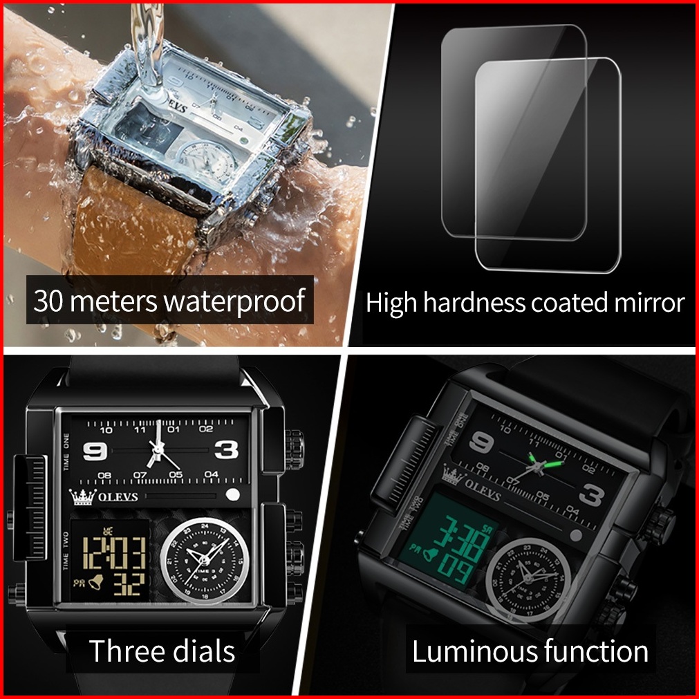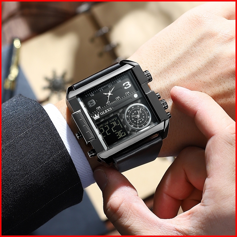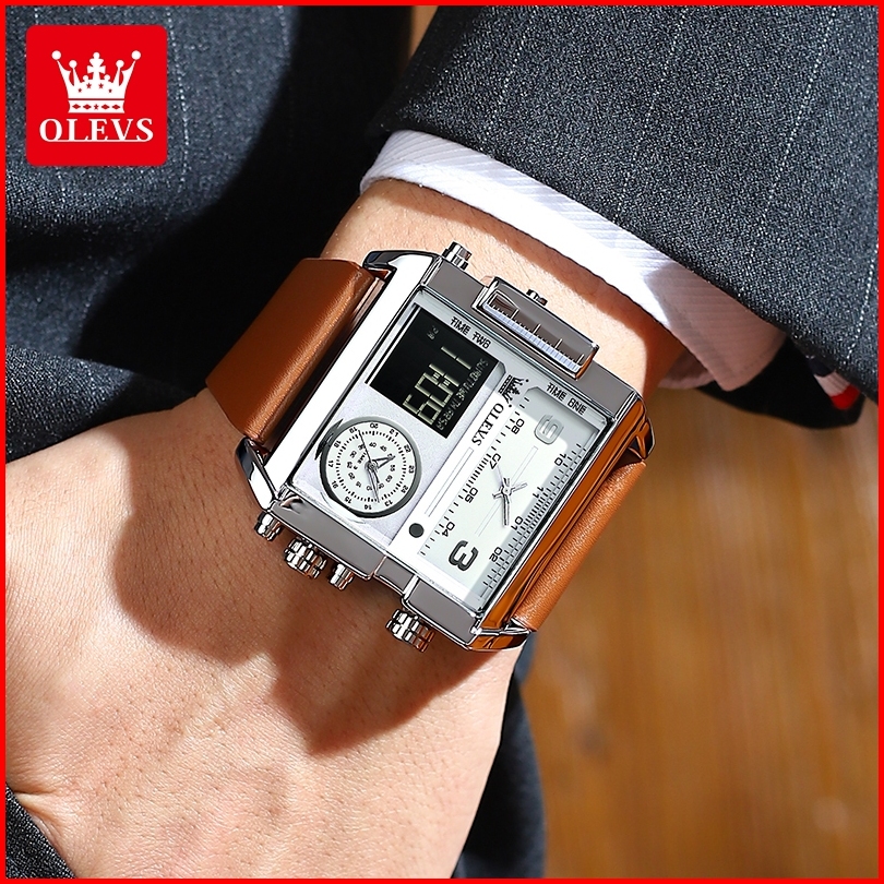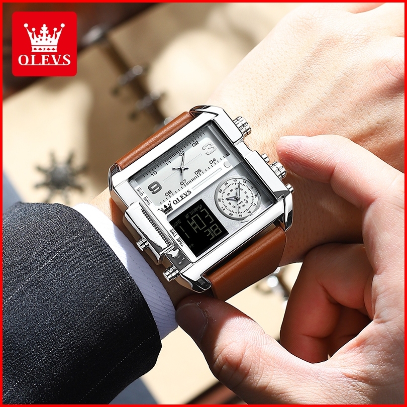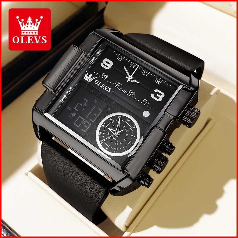 Olevs 1101 Jam Tangan Pria Anti Air Original Led Digital Tampilan Ganda Analog Multi Fungsi Jam Alarm Pengatur Waktu Men