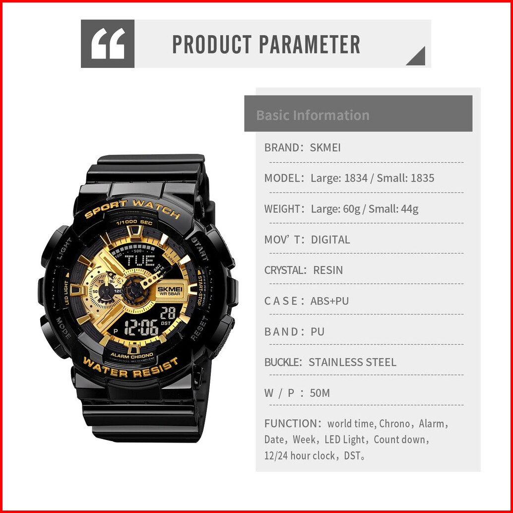 Skmei 1834 1835 Jam Tangan Pria Wanita Digital Analog World Time Anti Air Mgos