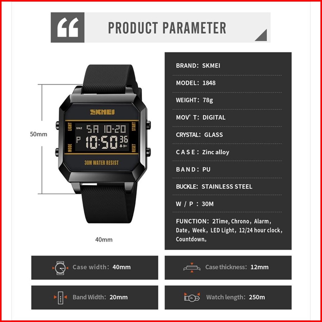 Jam Tangan Pria Skmei 1848 Digital Rubber Strap Water Resist Original 5 Atm