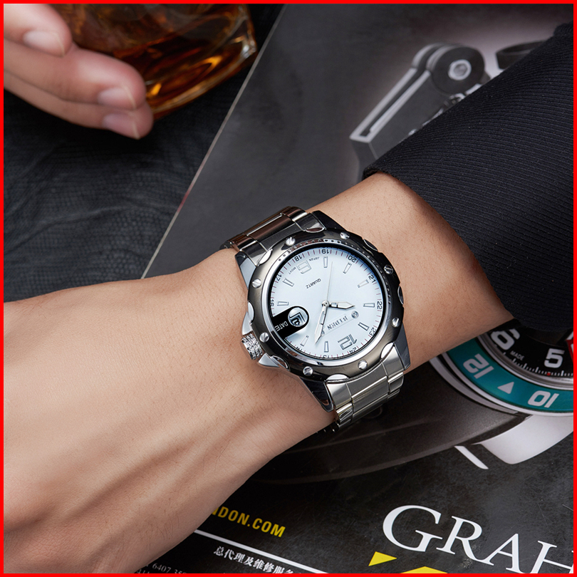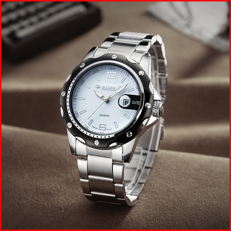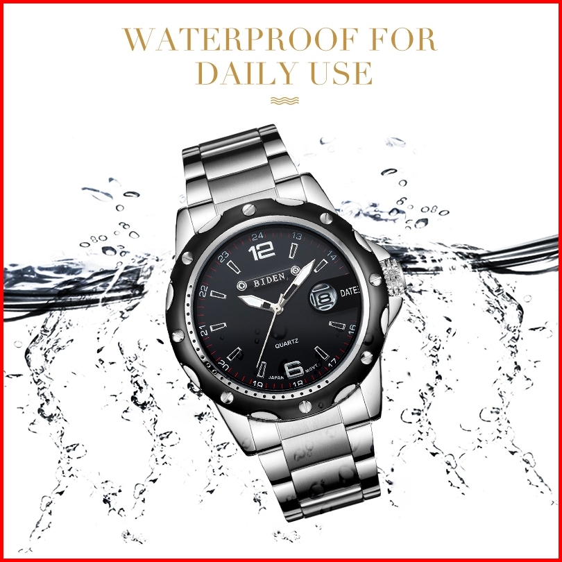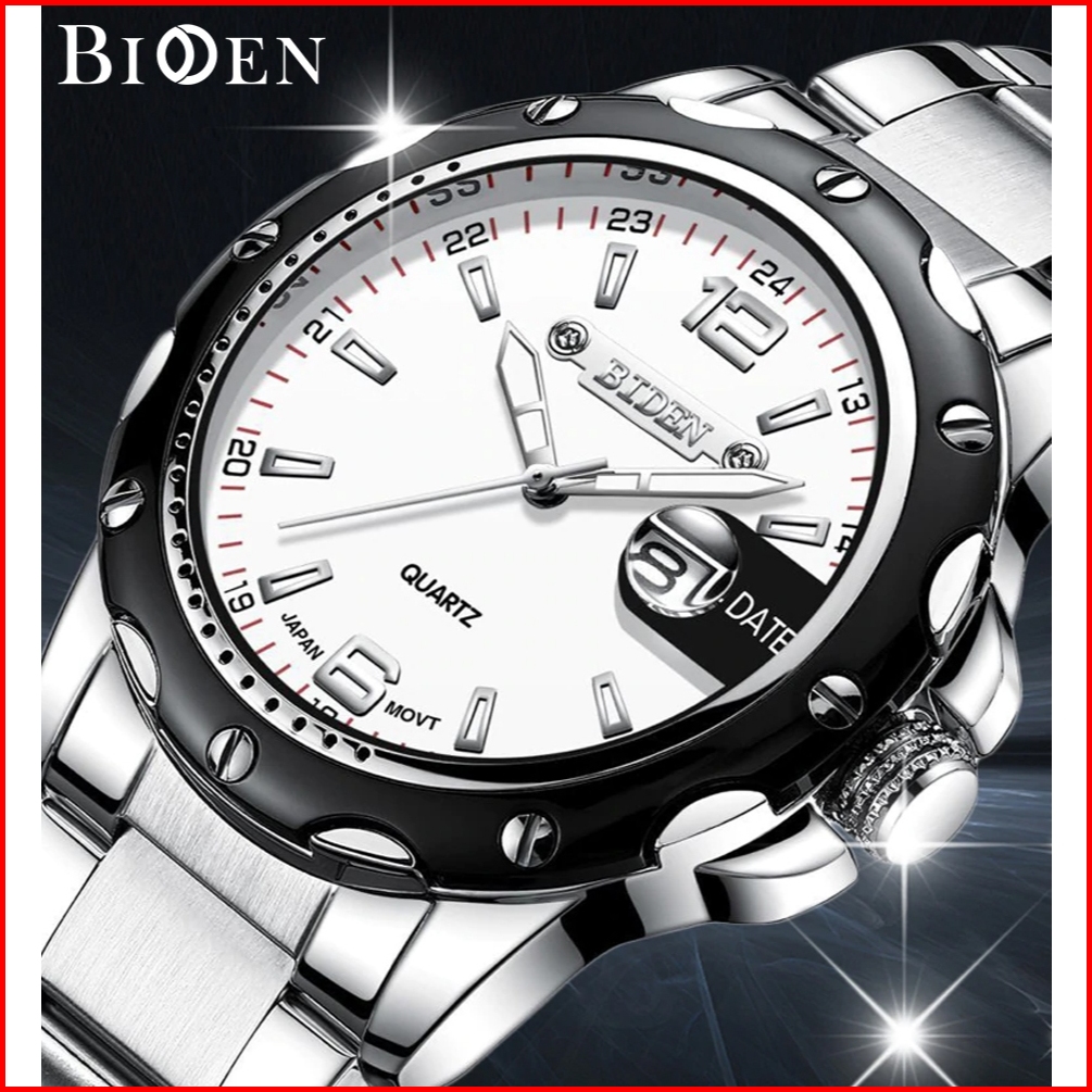 Biden Jam Tangan Pria Original Kuarsa Kalender Tali Stainless Steel Jam Tangan Cowok Anti Air