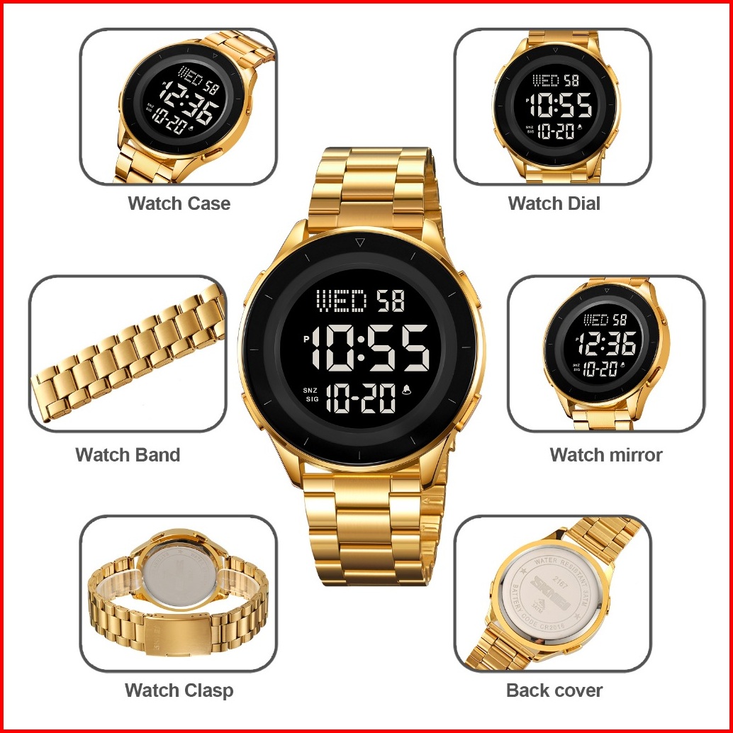 Skmei 2167 Jam Tangan Pria Digital Tali Stainless Rantai Watchkite Wkos