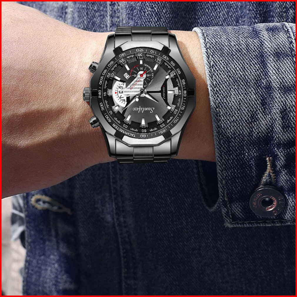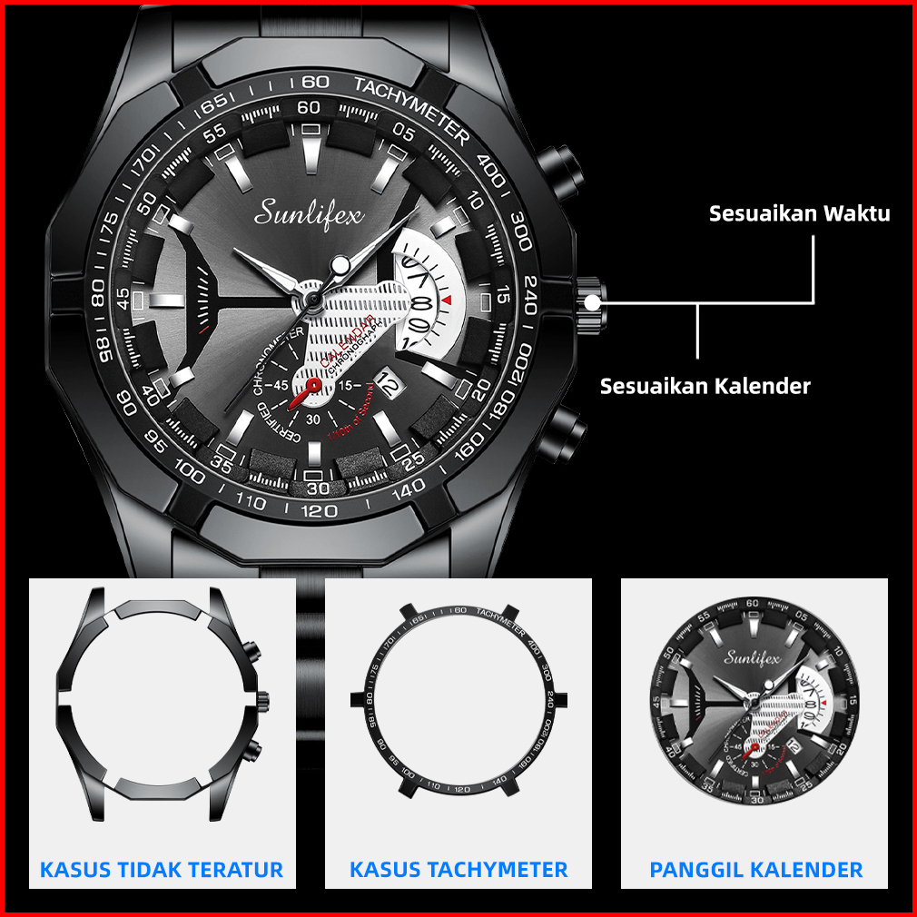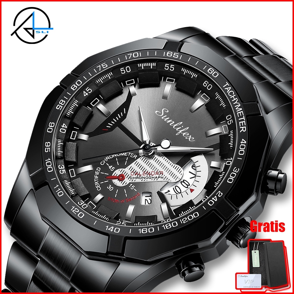 Jam Tangan Pria Original Anti Air Kasual Sunlifex Jam Pria Tali Stainless Steel Jam Tangan Cowok