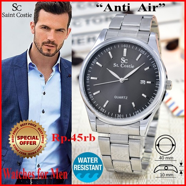 Jam Tangan Pria Murah - Jam Anti Air Rantai Tanggal - Af-28060a-g-tgl-stainless Stell Band