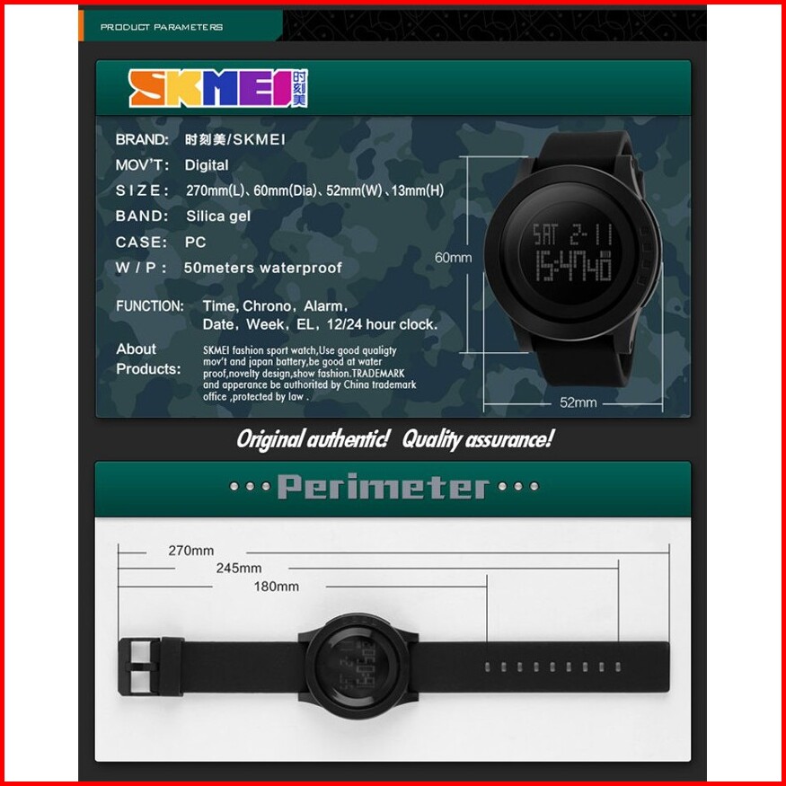 Jam Tangan Pria Digital Skmei 1142 Black Water Resistant 50m