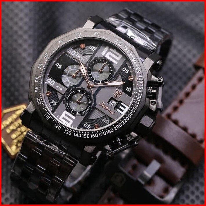 Jam Tangan Pria Tetonis Rantai 6012 Original Bonus Kulit