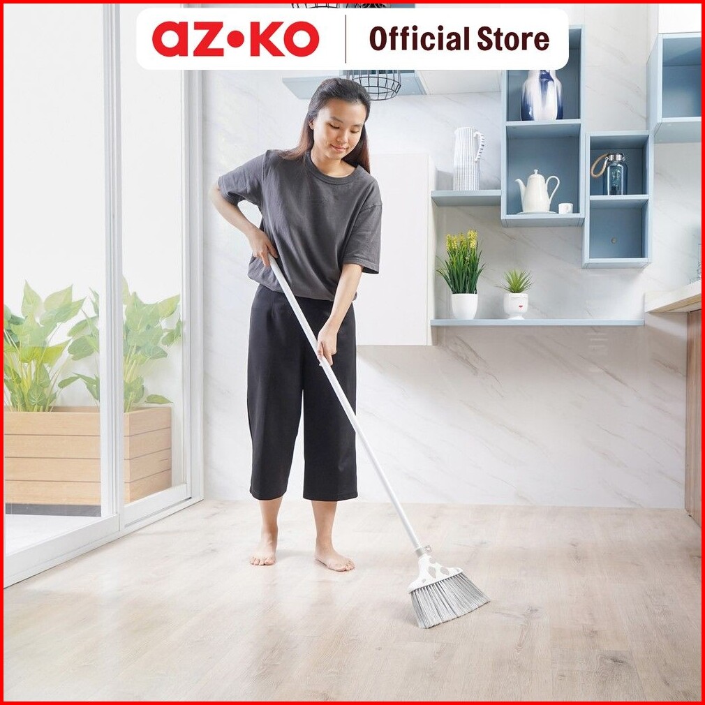 Azko Proclean Set Sapu Motif Bunga 5529 - Putih Abu-abu Multifunctional Floor Broom Sapu Serbaguna Alat Kebersihan Pembe
