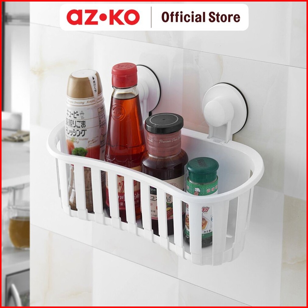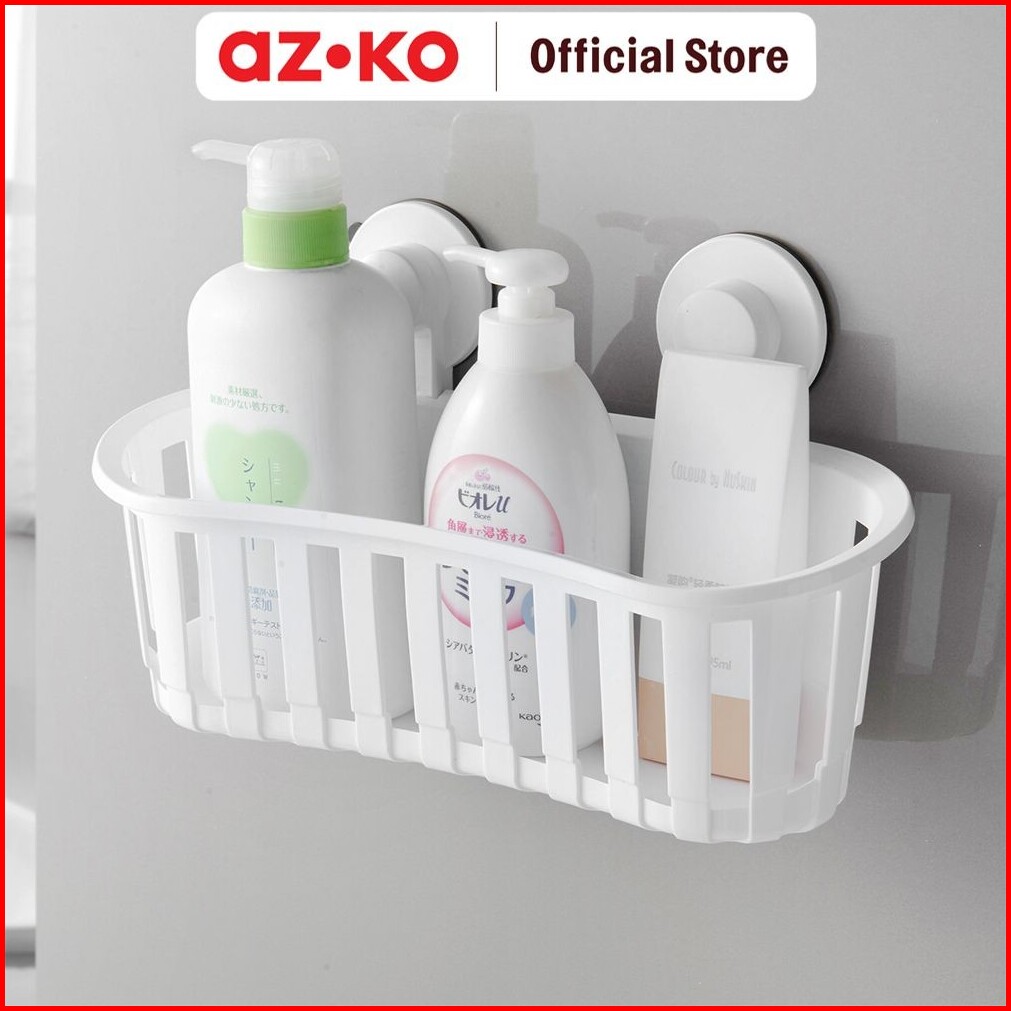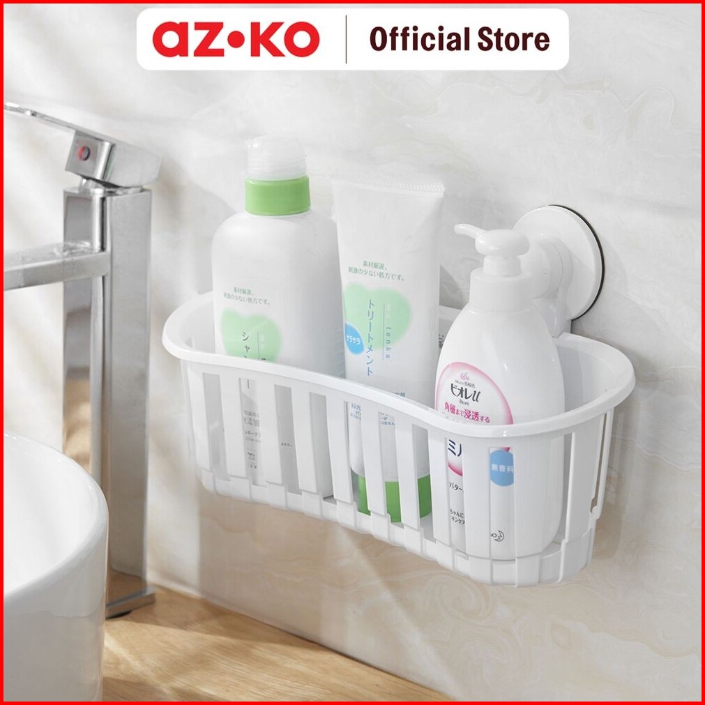 Azko Stora Keranjang Kamar Mandi - Putih Organizer Serbaguna Rak Sabun Shampoo Tempat Peralatan Mandi Bathroom Wall Shel