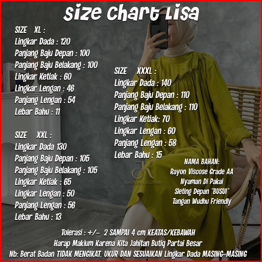 Lizza Oversize Tunik Jumbo Rayon Viscose Sleting Busui By Juraganklambijumbo