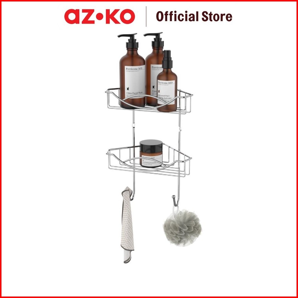 Azko Stora Rak Sudut Kamar Mandi Wk70891 - Silver Shower Wall Shelf Corner Rak Tembok Serbaguna Aksesoris Kamar Mandi Fu
