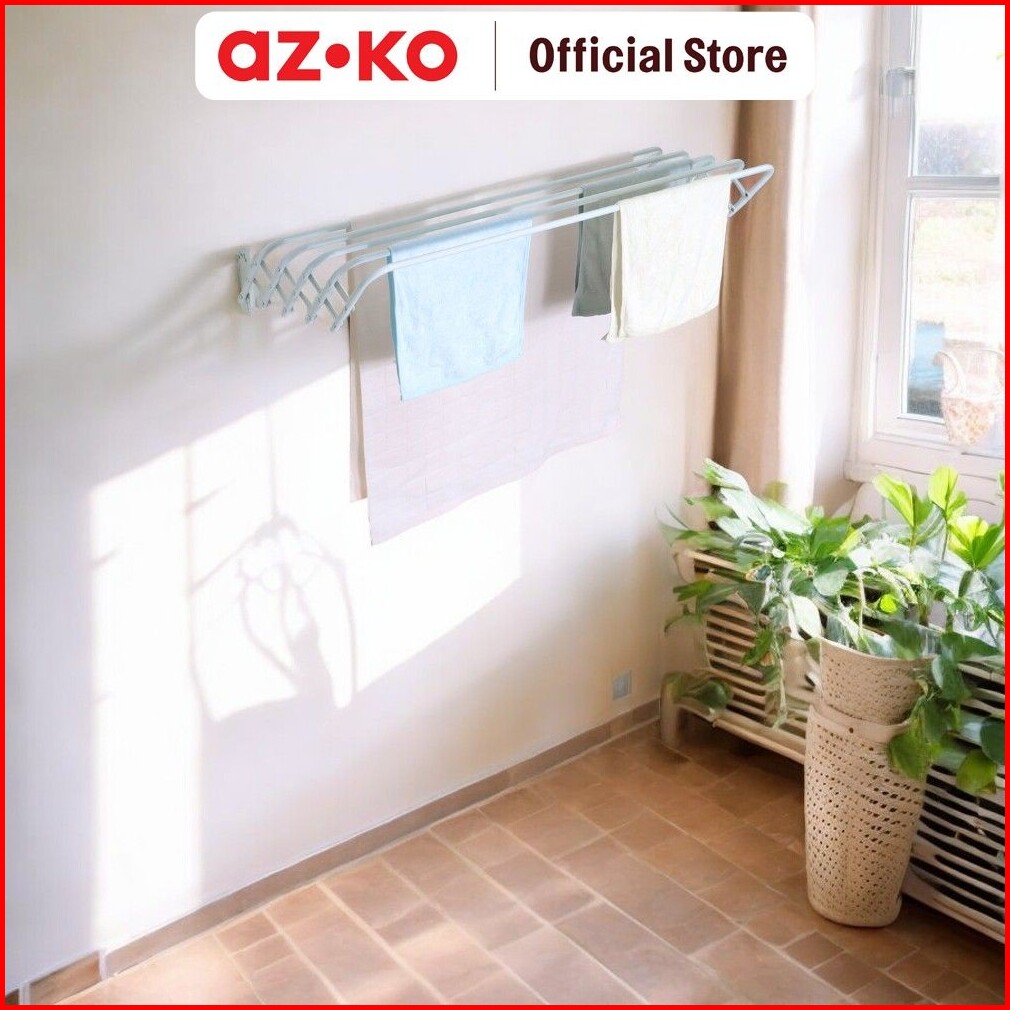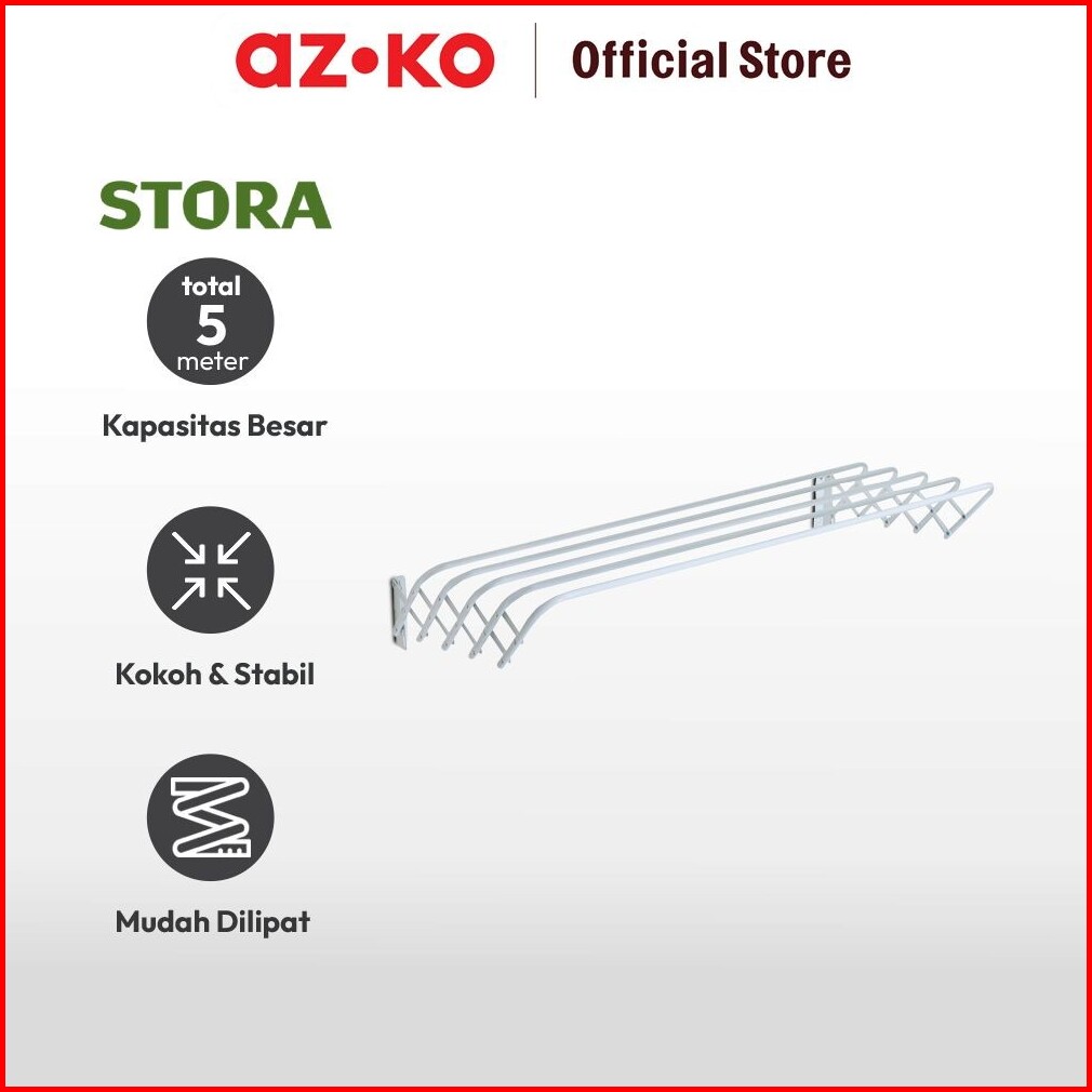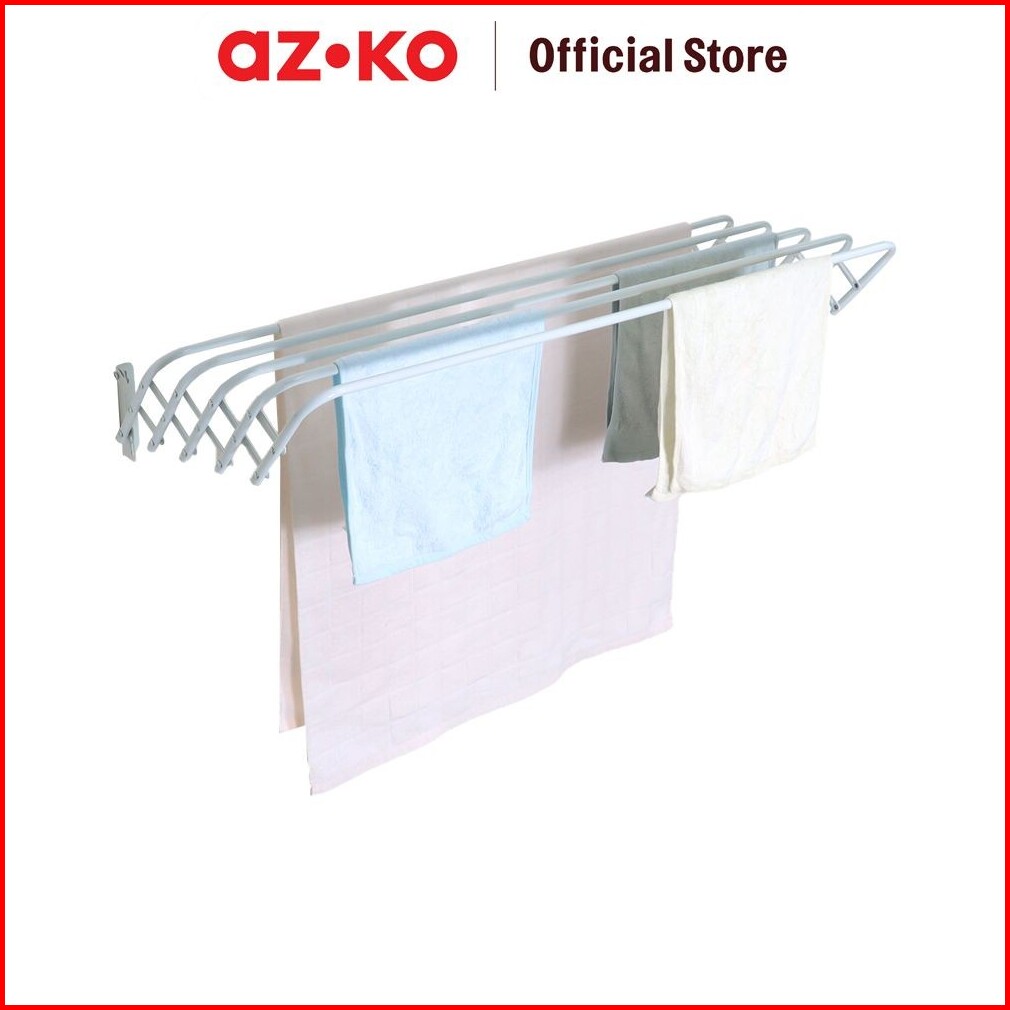 Azko Stora Gantungan Handuk Teleskopik - Putih Tempat Jemur Anduk Drying Rack Gantungan Lap Mandi Towel Rack Besi