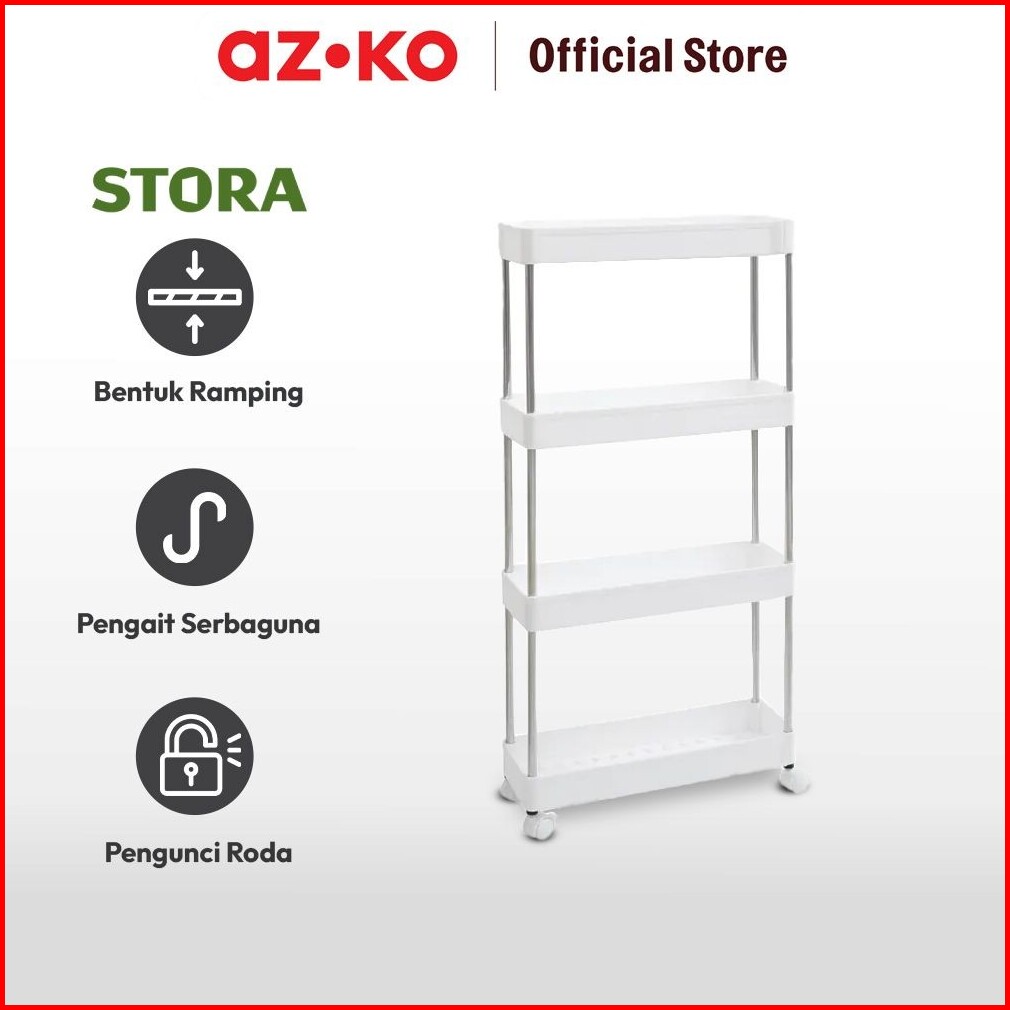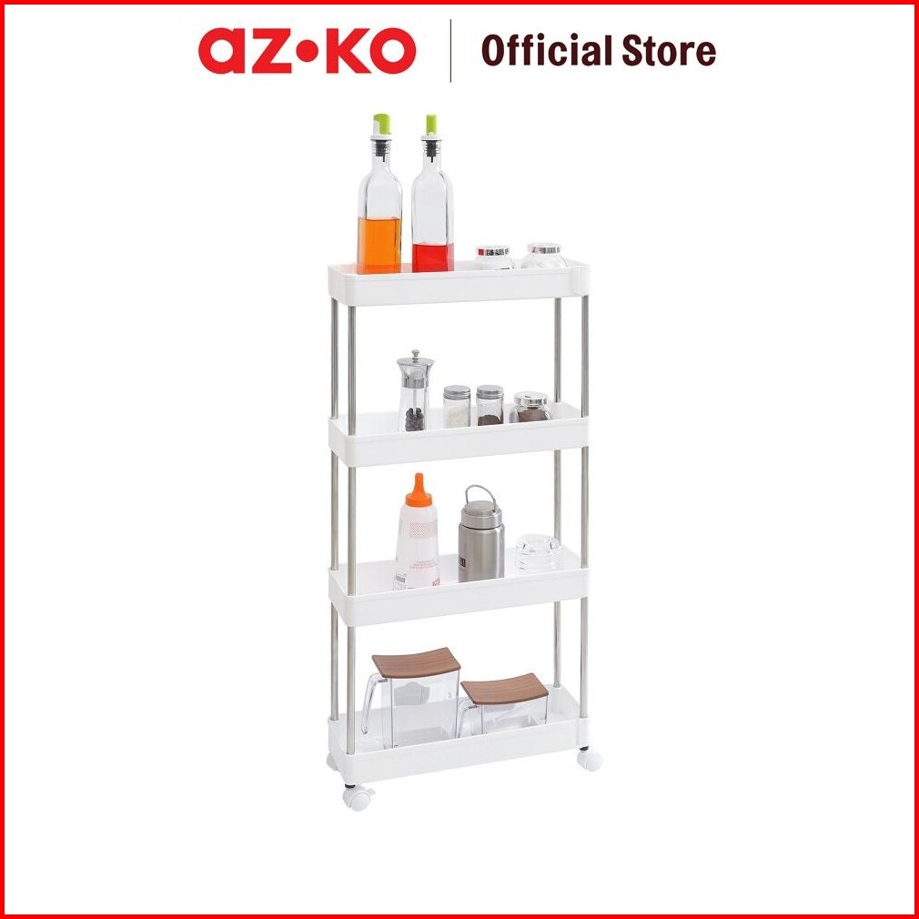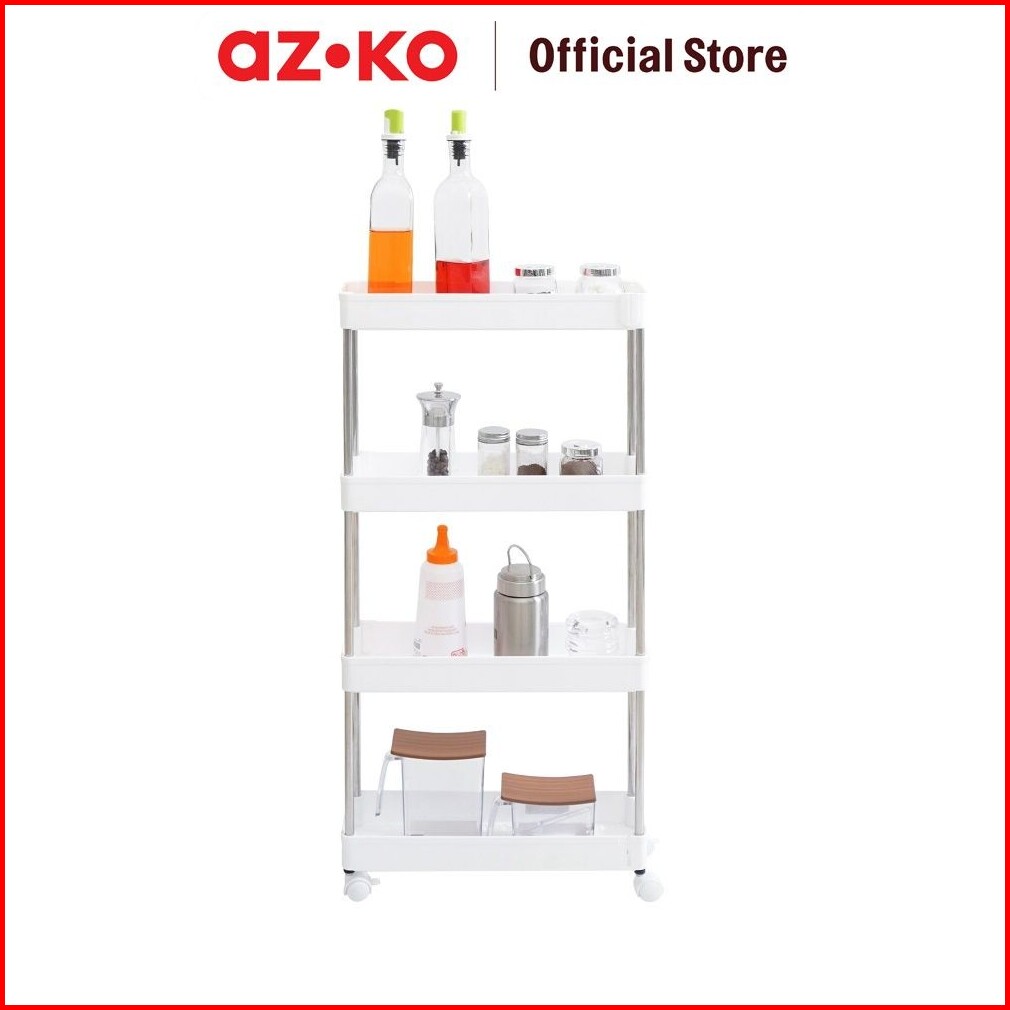 Azko Stora Rak Troli Slim 4 Tingkat - Putih Tempat Penyimpanan Multifungsi Storage Trolley Wheels Rack Perlengkapan Ruma