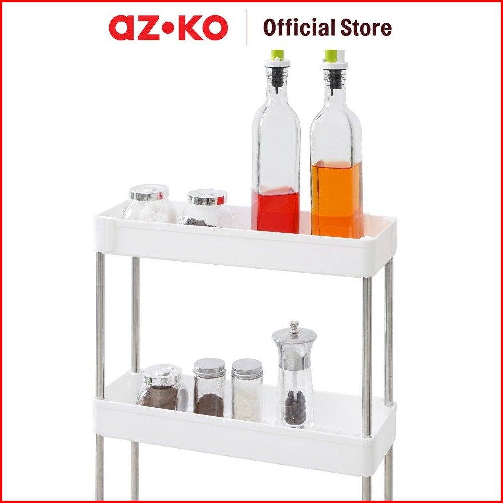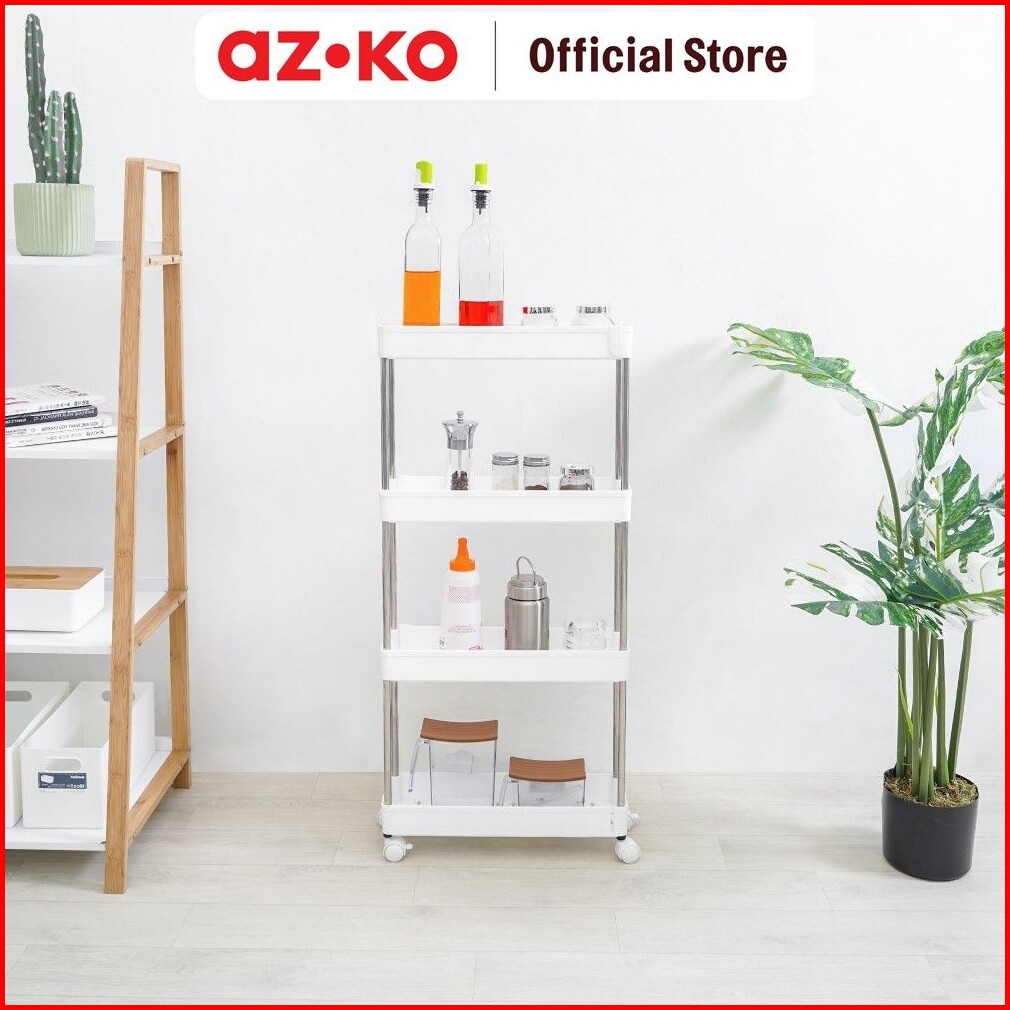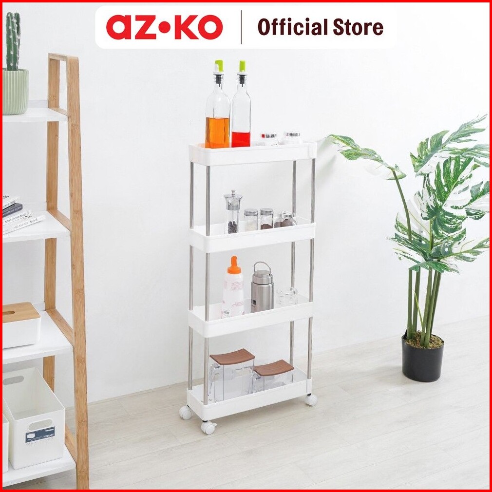Azko Stora Rak Troli Slim 4 Tingkat - Putih Tempat Penyimpanan Multifungsi Storage Trolley Wheels Rack Perlengkapan Ruma