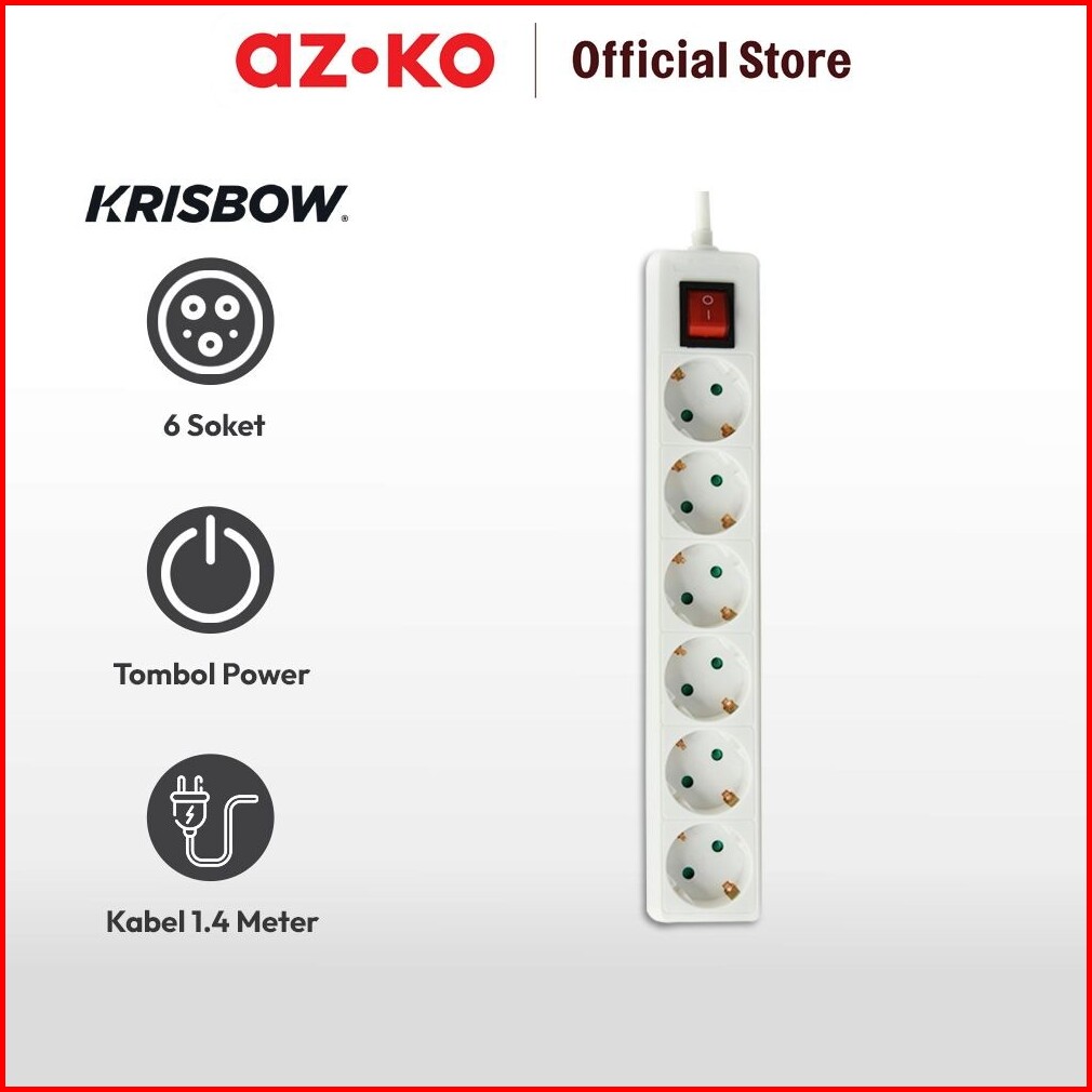 Azko Krisbow Stop Kontak 6 Soket Kw2-300 - Putih Electric Socket Terminal Colokan Listrik Peralatan Elektronik Extension