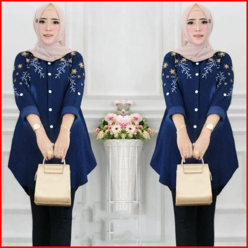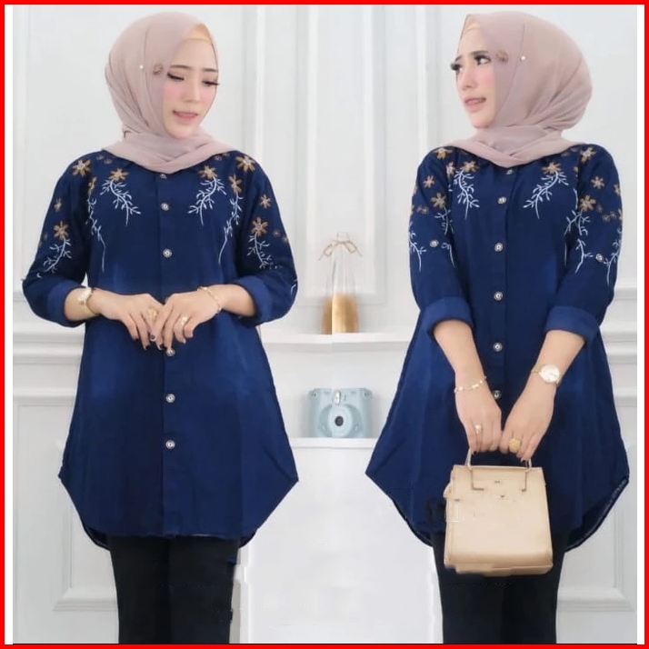 Ghea Tunik Jeans Br Mona Tunik Jeans Baju Wanita Kekinian Murah Trendy Modis Formal Kerja Kantor