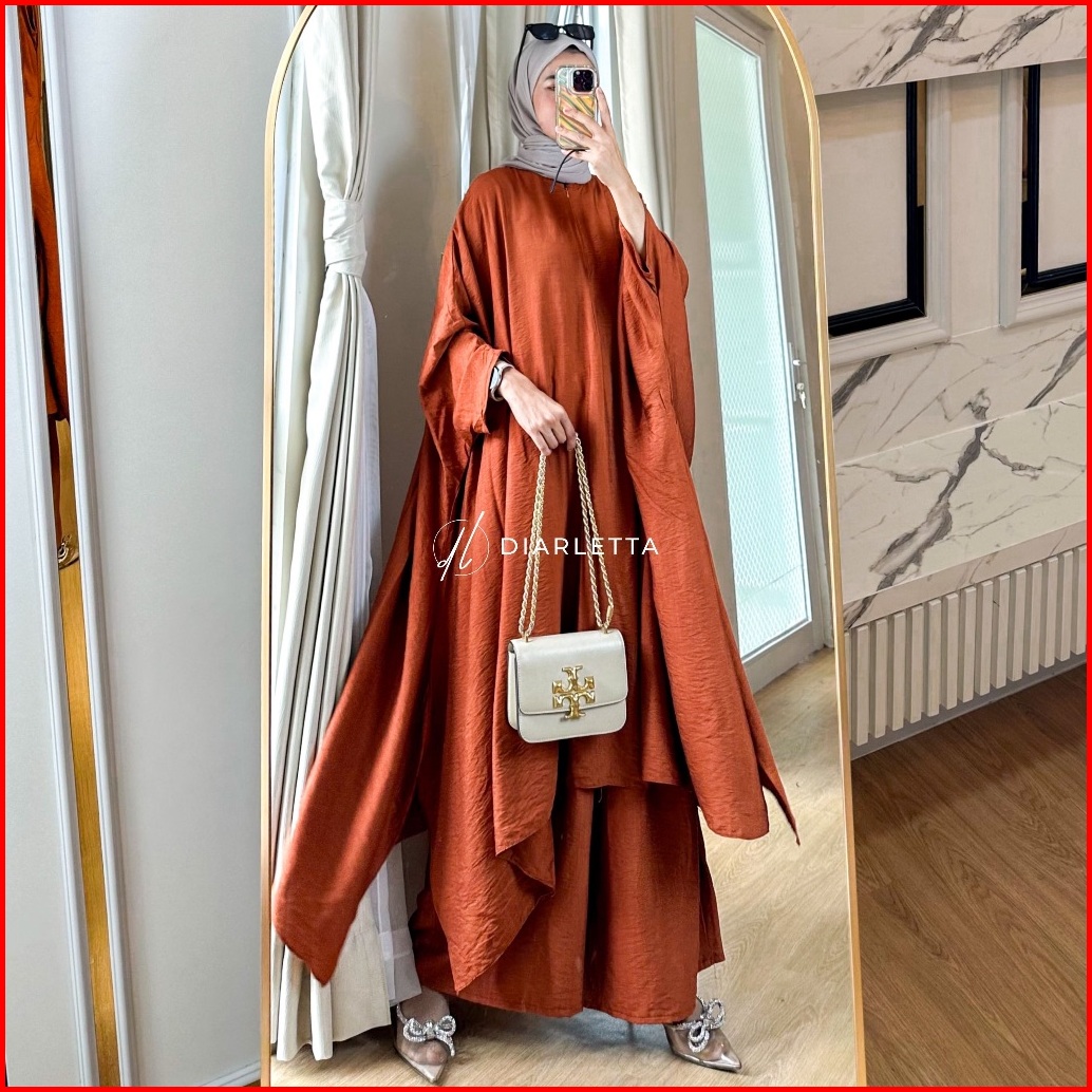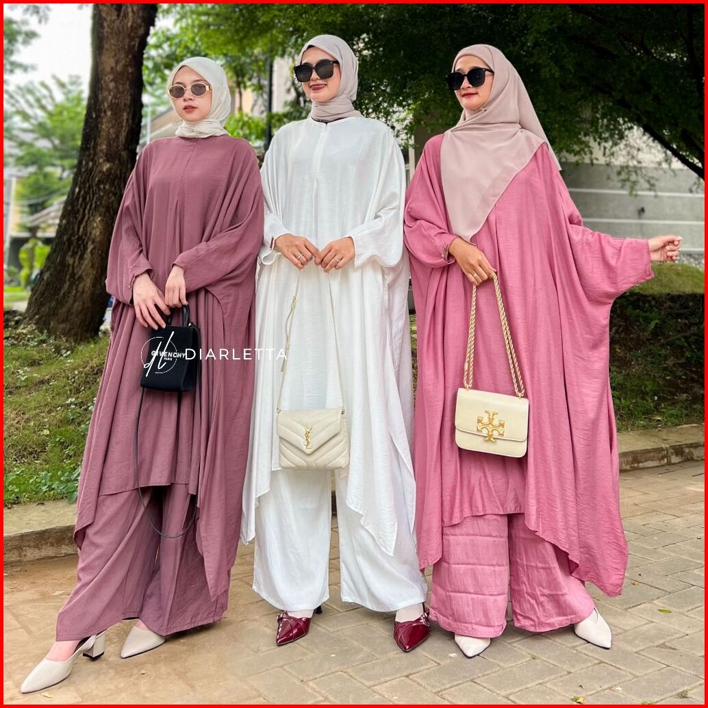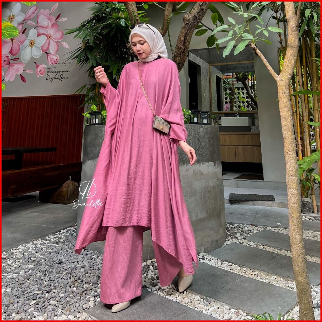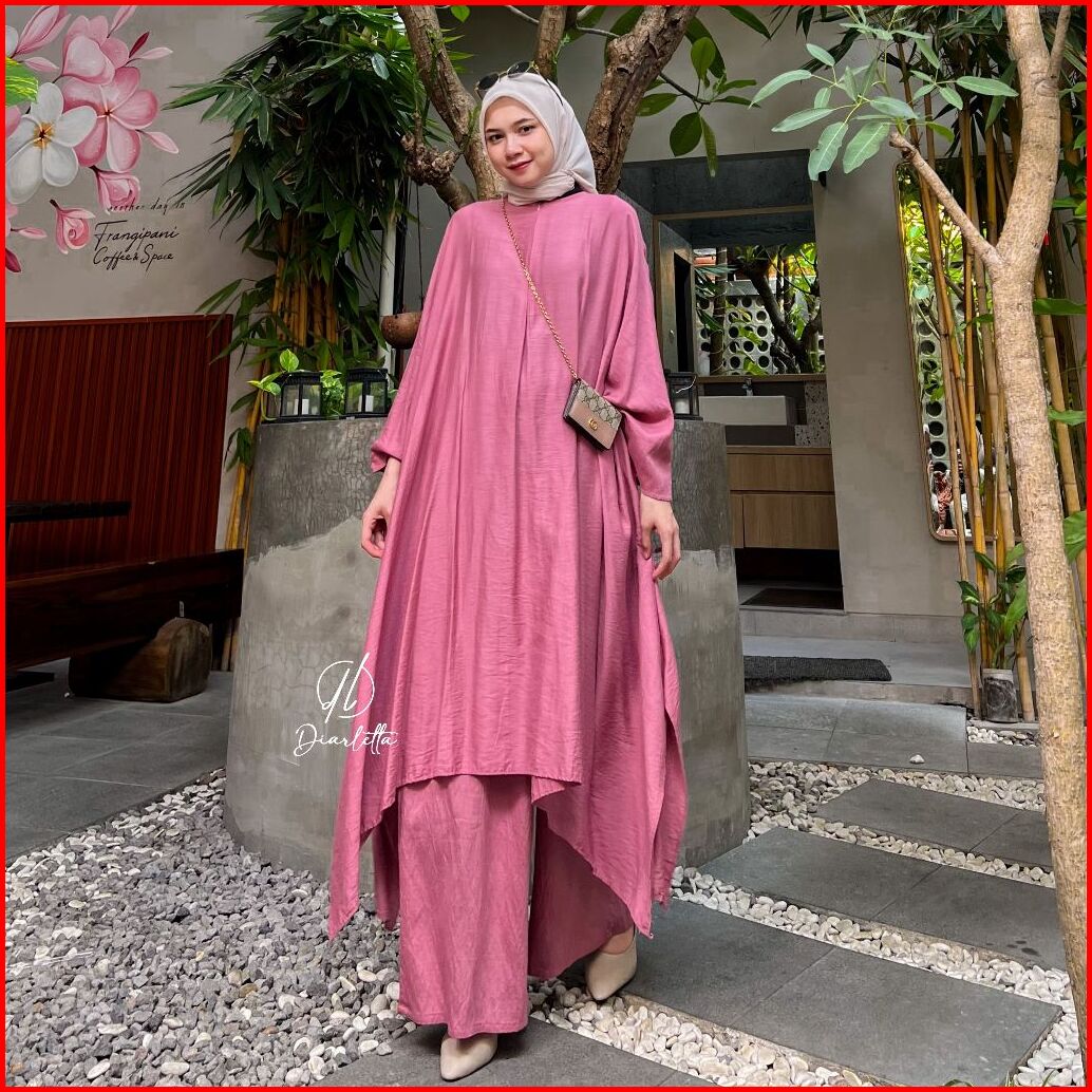 Zaheera Abaya Set Kulot Abaya Tunik Jumbo Polo Linen Premium By Diarletta