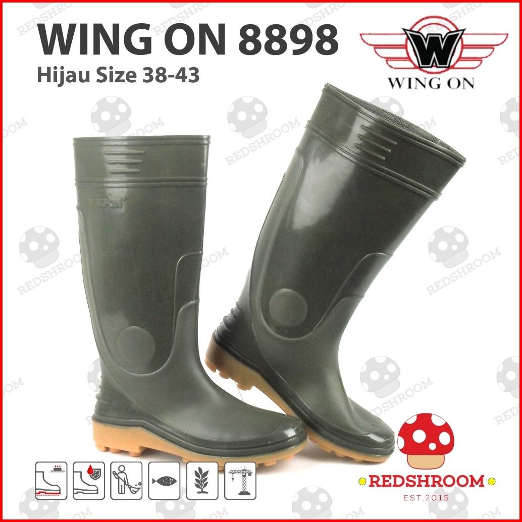 Sepatu Boot Tinggi Wing On 8898 Hijau Boots Karet Lokal Lentur Anti Slip Air Perkebunan Peternakan